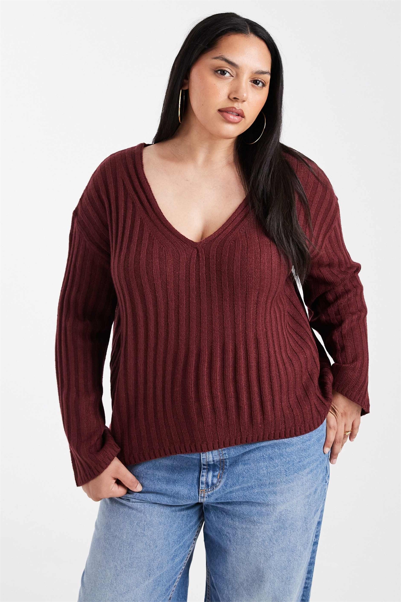Свитер с глубоким V-образным вырезом и ребристой отделкой