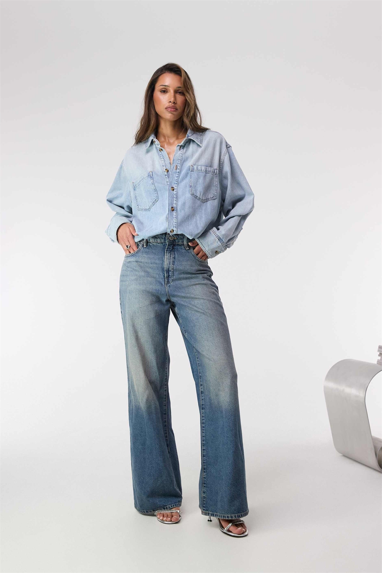 Джинсовая ткань с эластаном: синий оттенок. Основной состав: 57% хлопок, 31% лиоцелл, 12% лен.