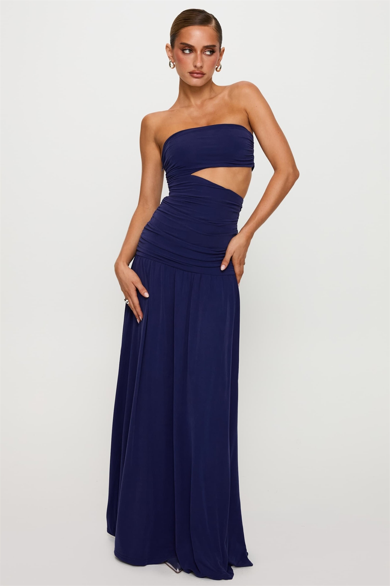 Макси-платье Grandeaur с бандо, вырезами и заниженной талией