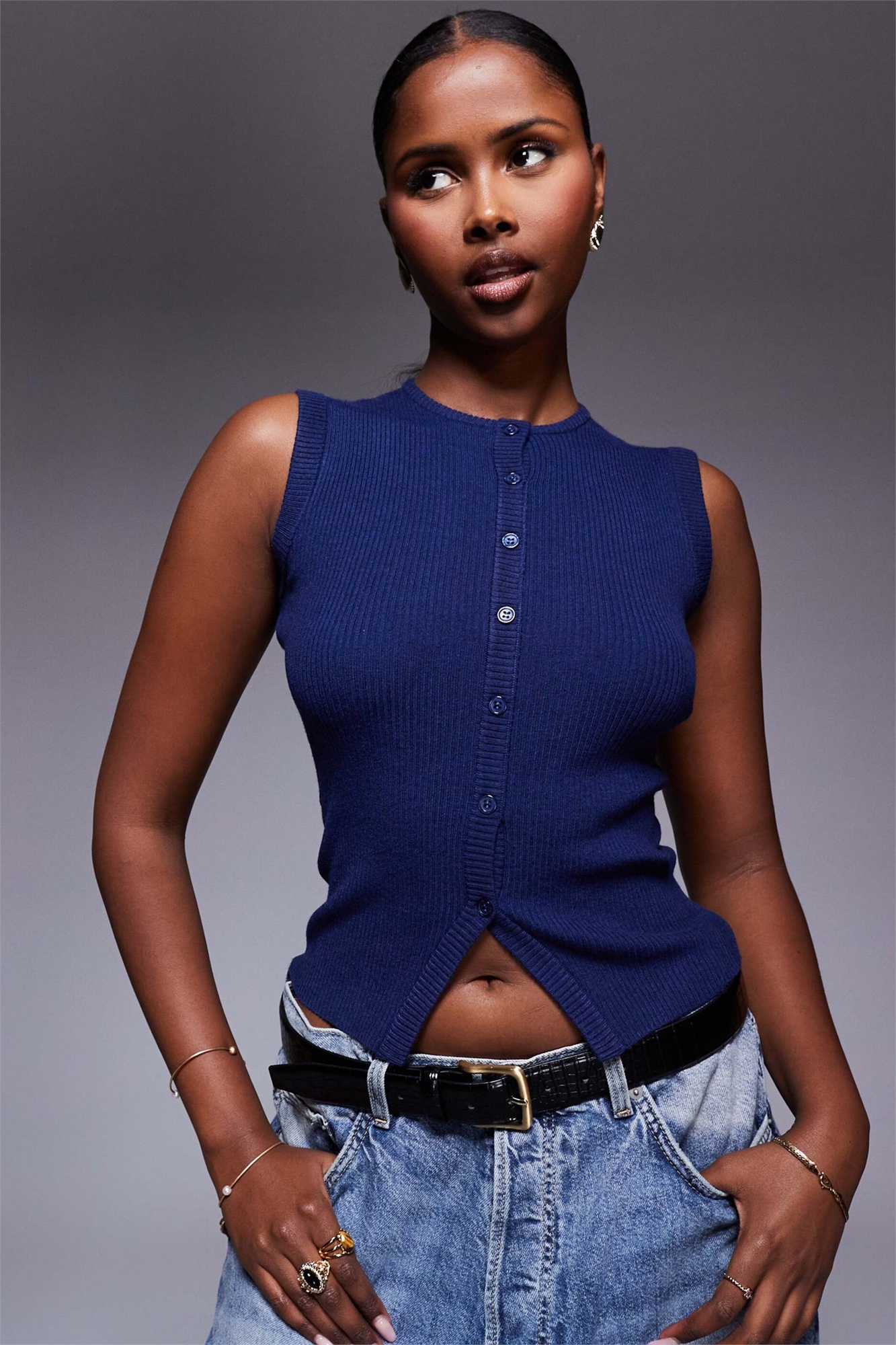 Топ-жилет из ребристого трикотажа с пуговицами от Suzu