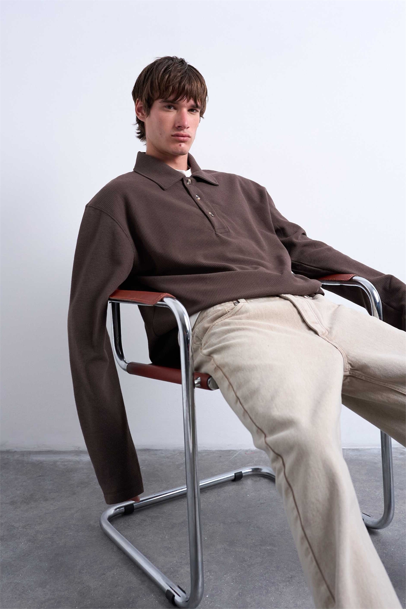 Свитшот-поло с вафельной текстурой и прямого кроя