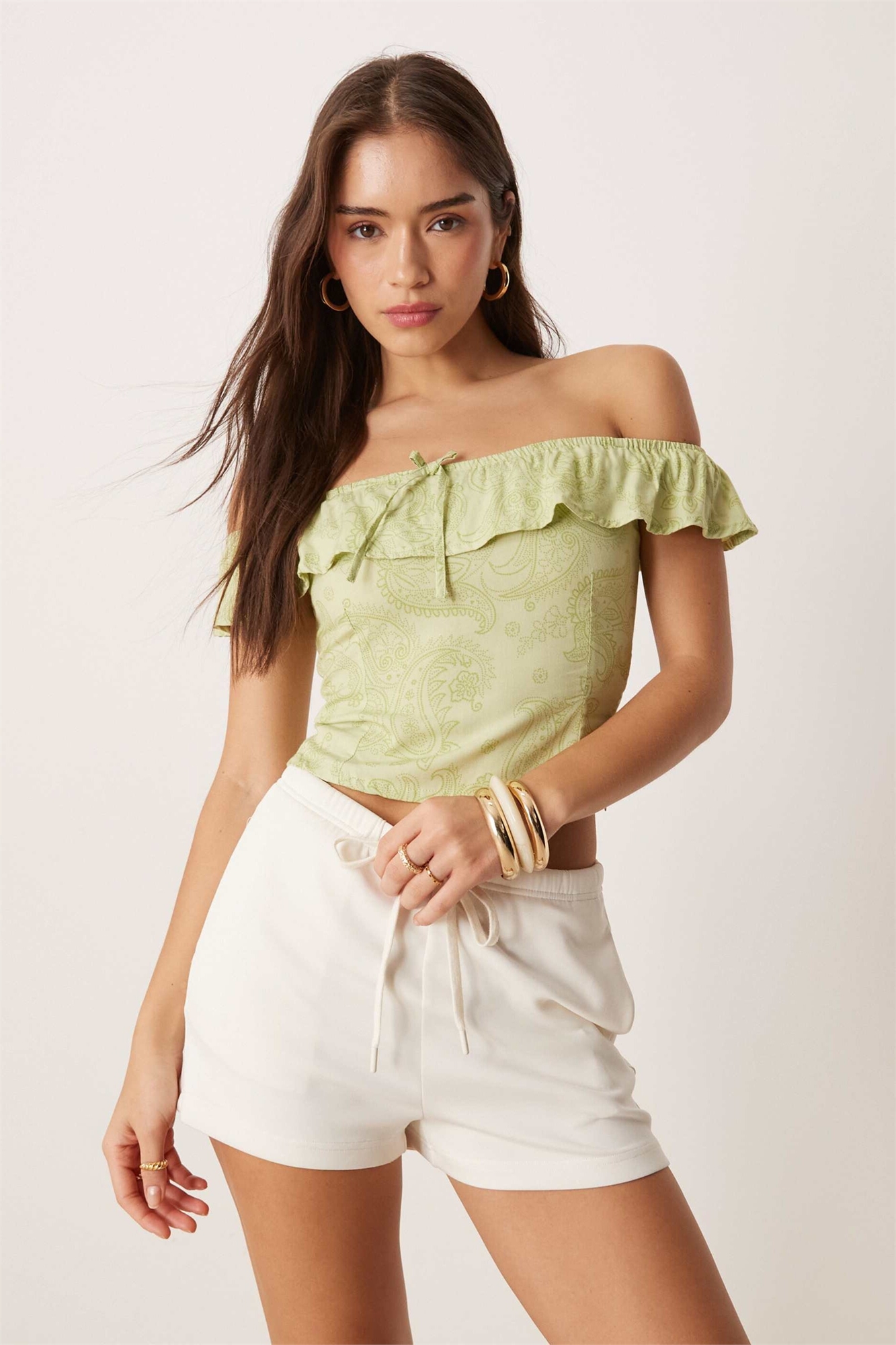 Топ с открытыми плечами в стиле ретро с принтом «пейсли» от Yokai