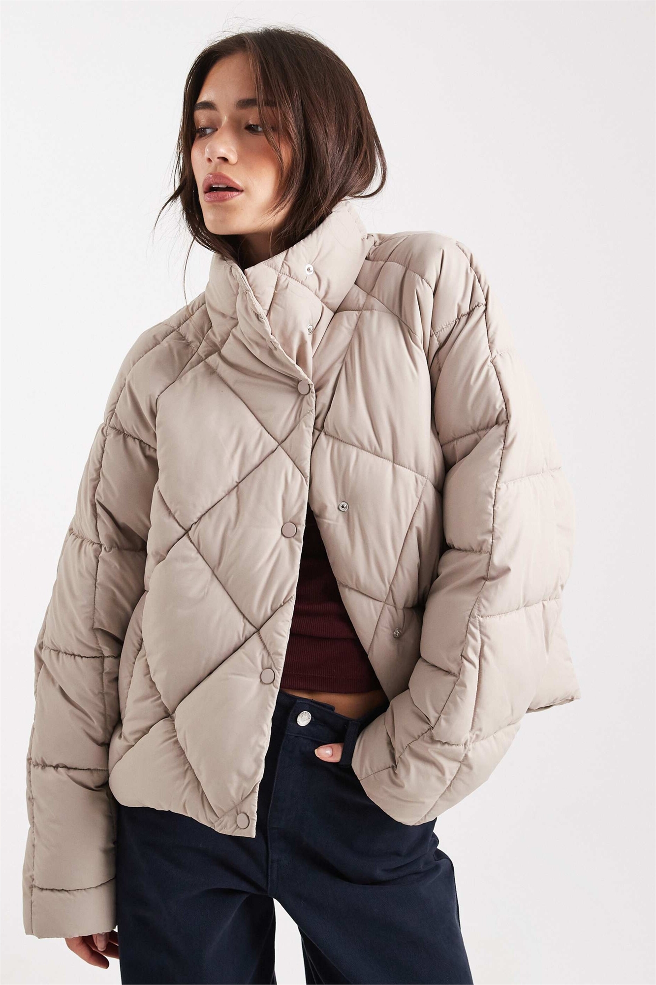 Укороченная пуховик с воротником-воронкой и крупным стеганым узором