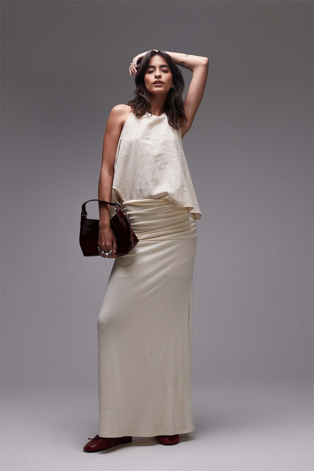 Макси-юбка с рюшами на талии