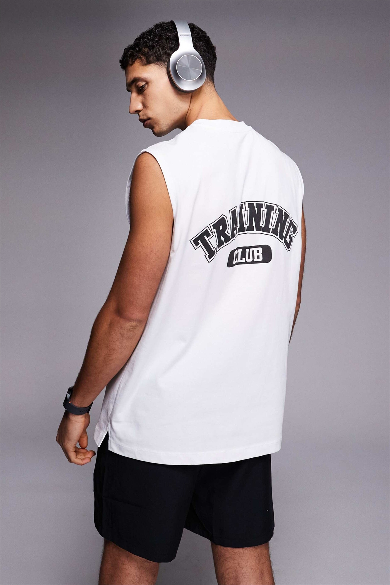 Футболка-майка для тренировок из плотного хлопка свободного кроя с принтом на спине и технологией быстрого высыхания