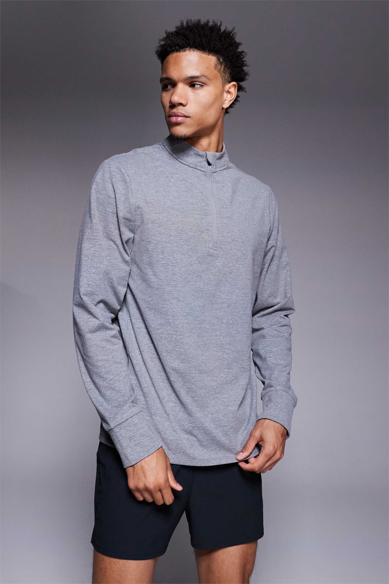Беговая тренировочная кофта с длинным рукавом, термоблокировкой и молнией на 1/4 длины, серого цвета
