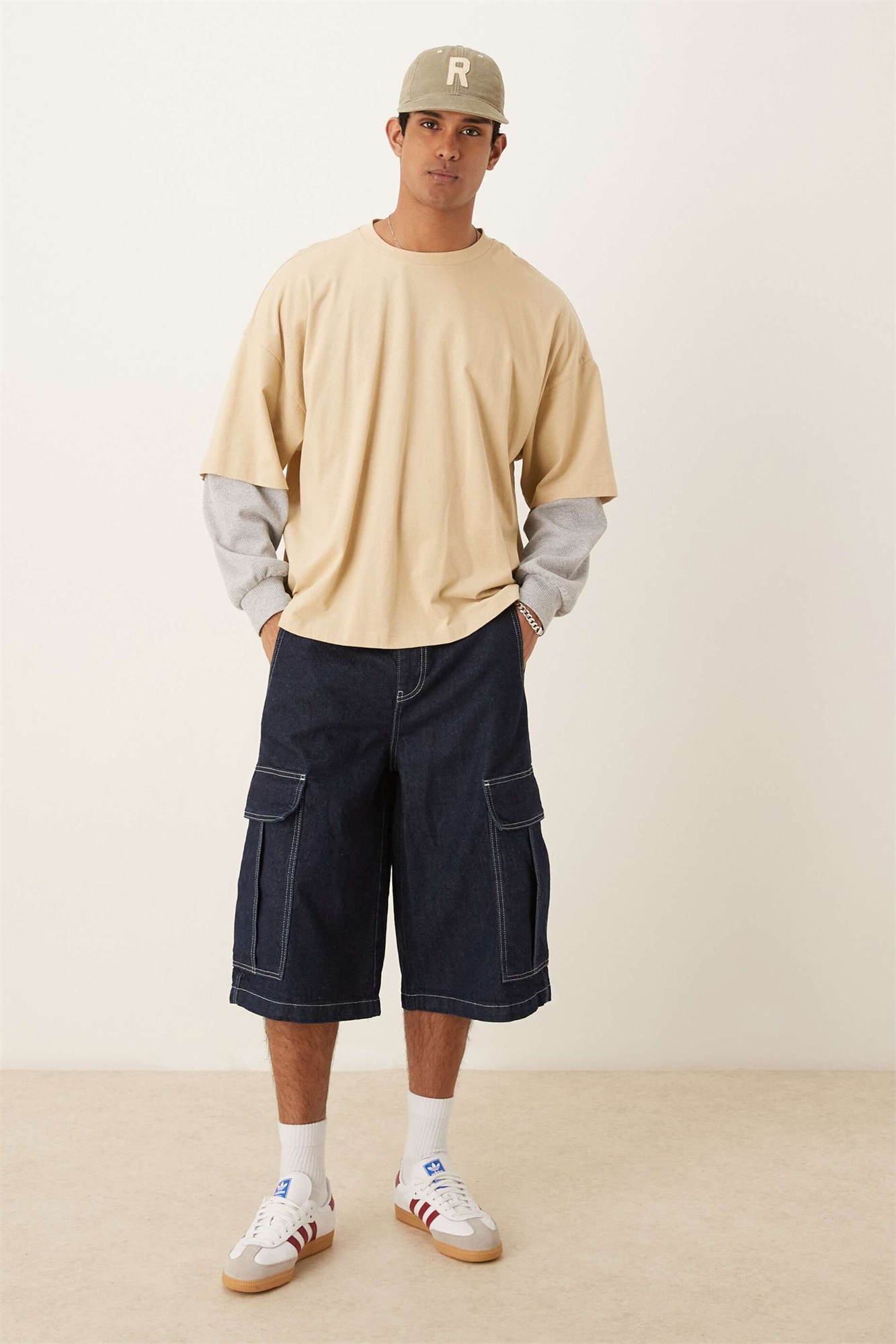 Длинные джинсовые шорты с двойными складками