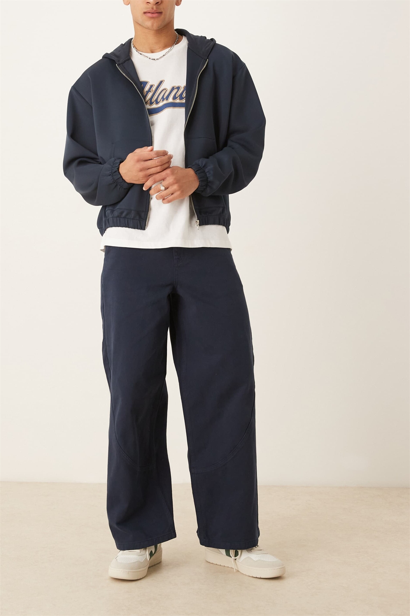 Широкие брюки с швами темно-синего цвета