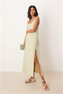 Летнее платье средней длины из хлопка и льна с круглым вырезом