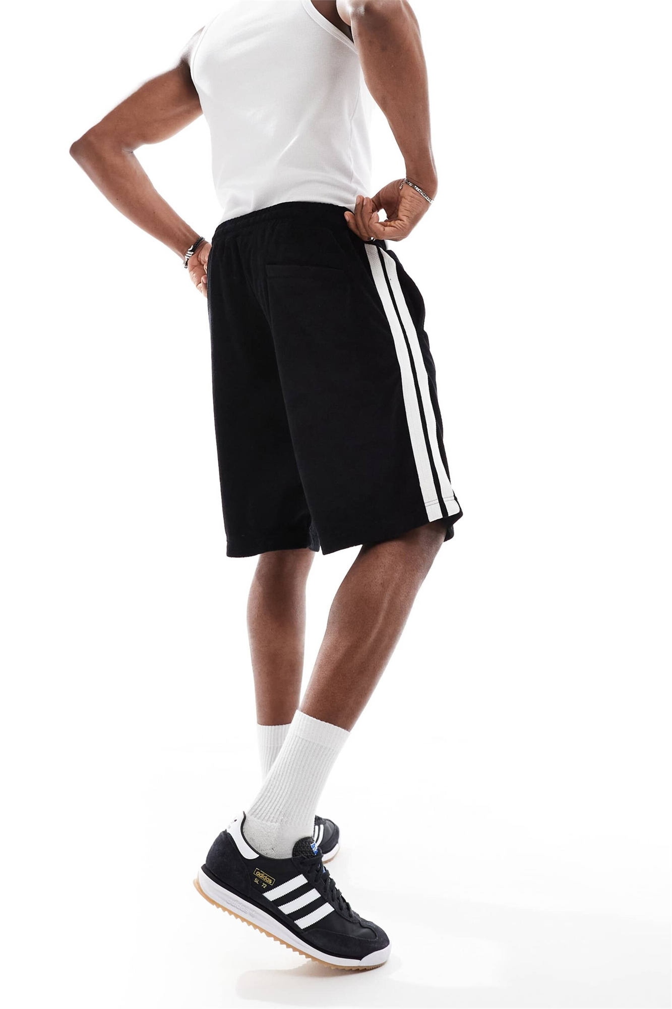 Шорты из махровой ткани с боковой полосой