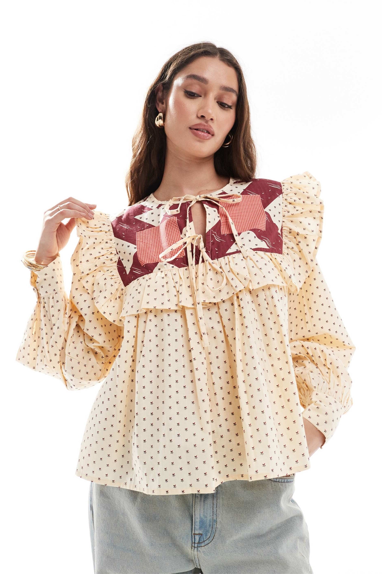 Топ с длинными рукавами и стеганым декором на груди