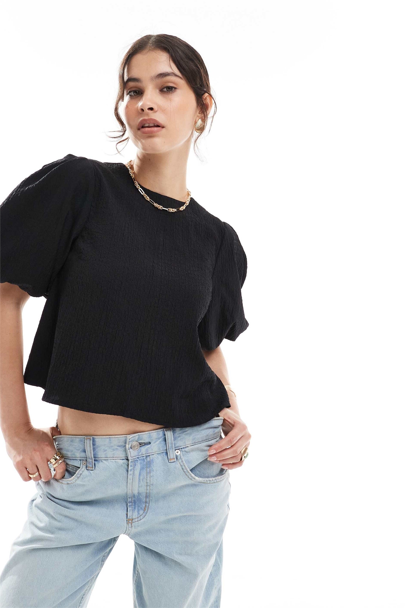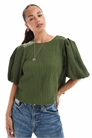 Топ из гофрированной ткани с буфетными рукавами