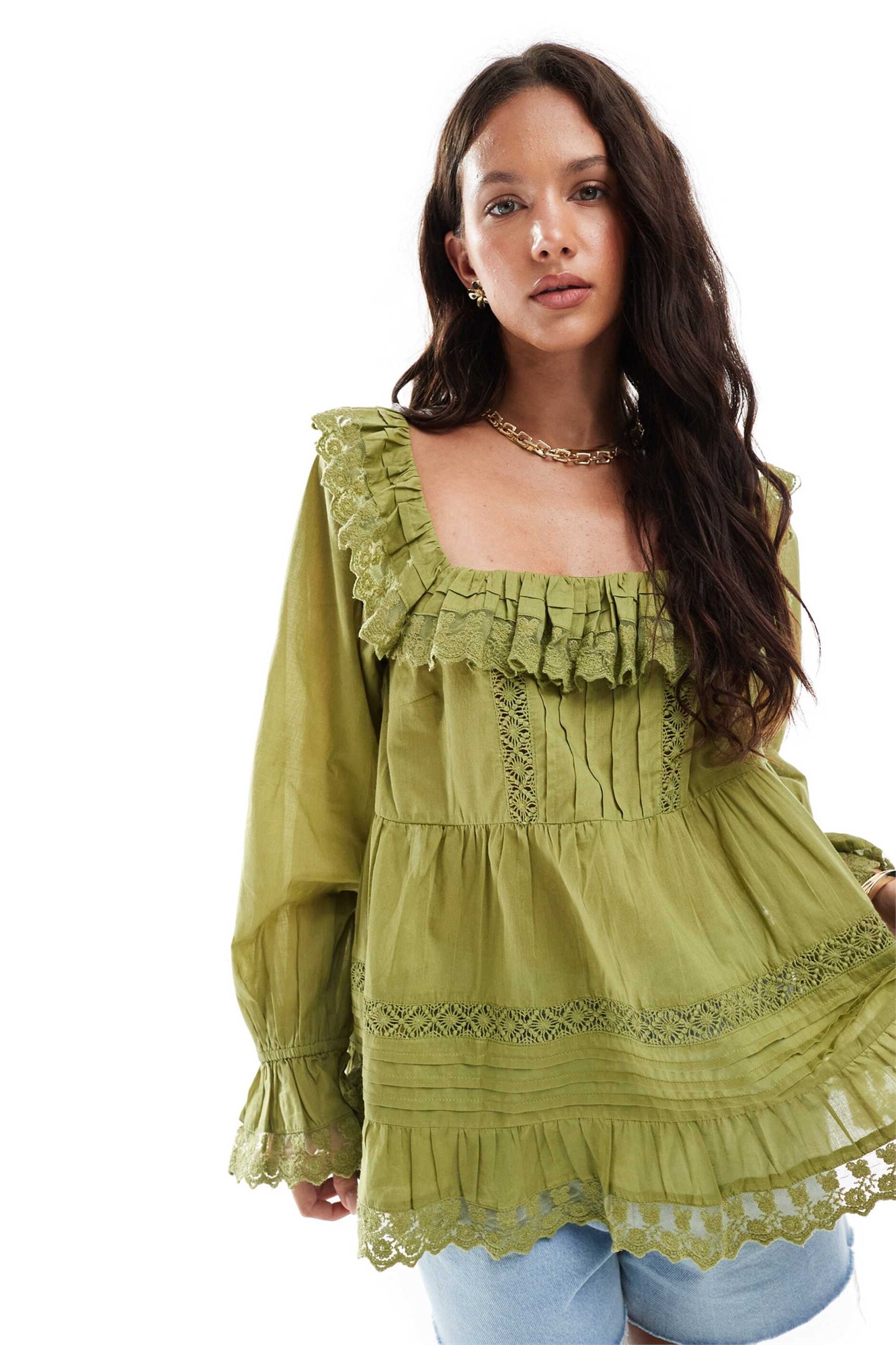 Топ с квадратным вырезом из смешанного кружева и вышивки