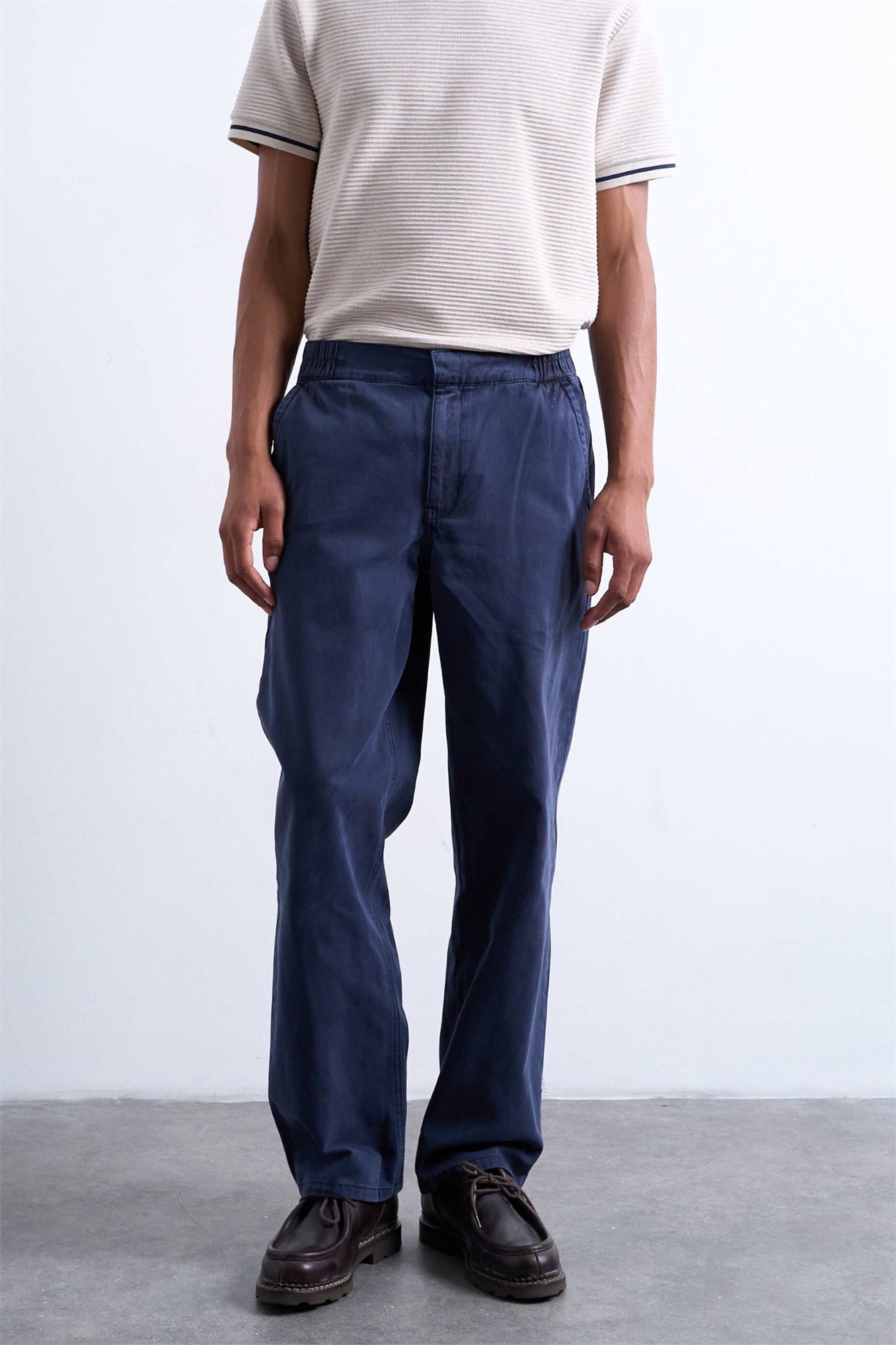 Брюки с прямыми брючинами из твила и эластичным поясом