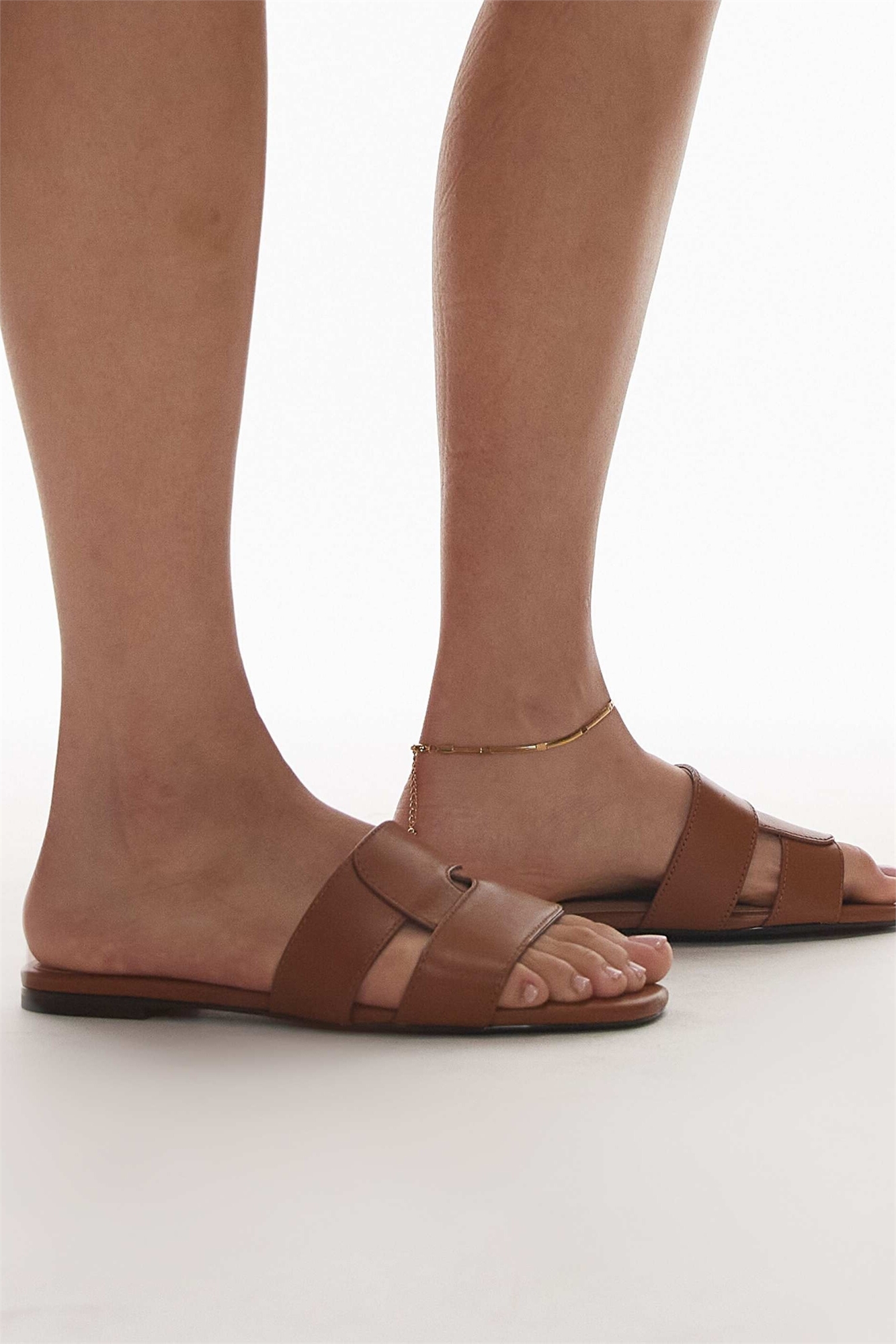 Кожаные сандалии на плоской подошве с квадратным носком