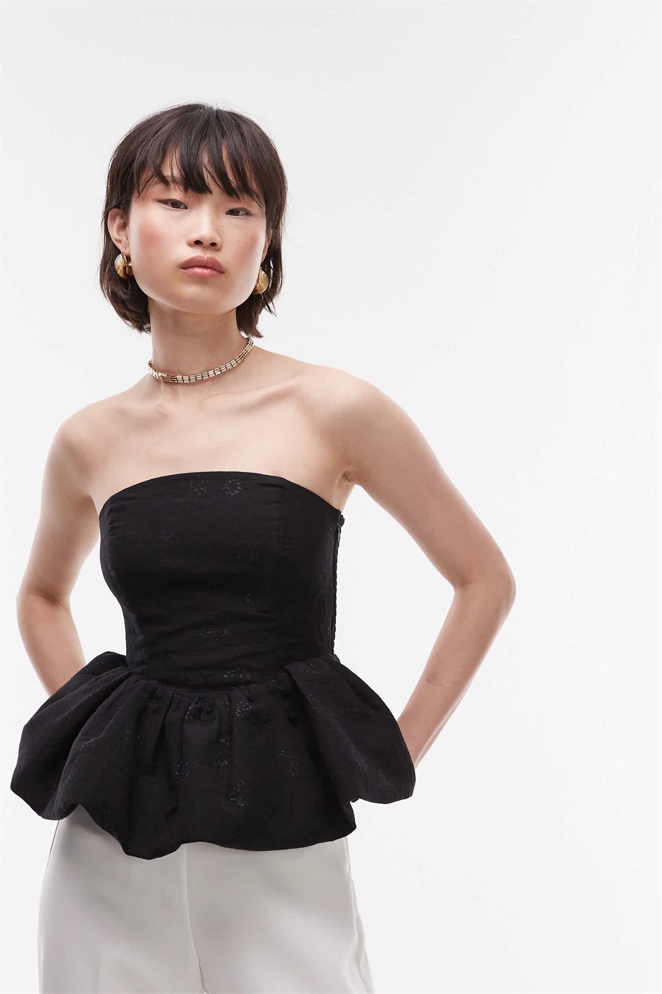 Бандо из металлизированной парчи с цветочным узором и расклешенным низом