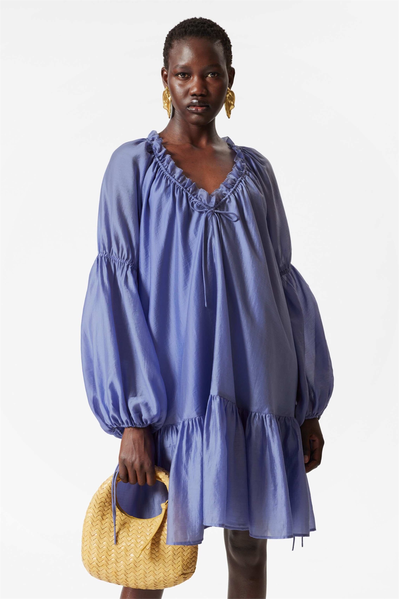 Полупрозрачное мини-платье с объемными рукавами