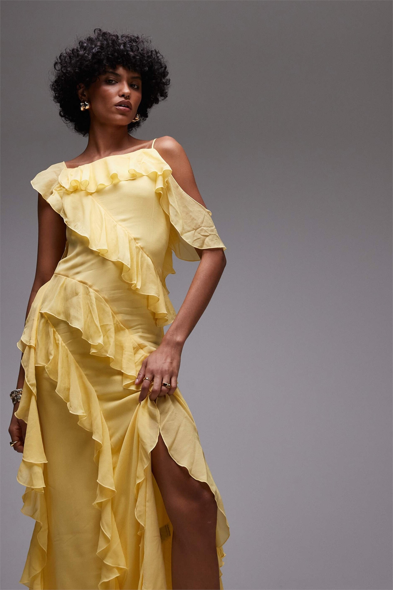Макси-платье-комбинация с многоярусными оборками и завязками на спине