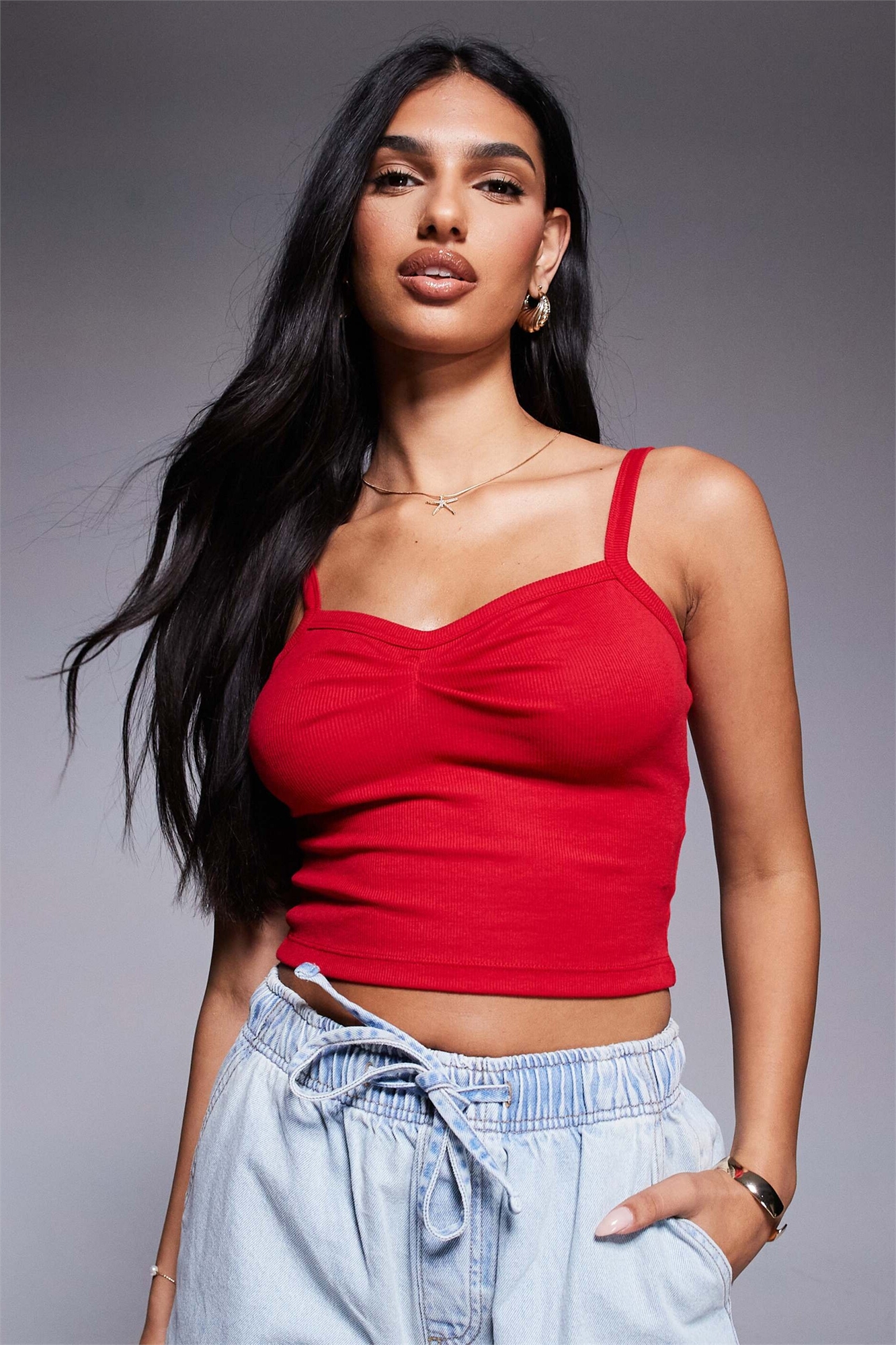 Топ-майка с ребристой отделкой и сборками спереди