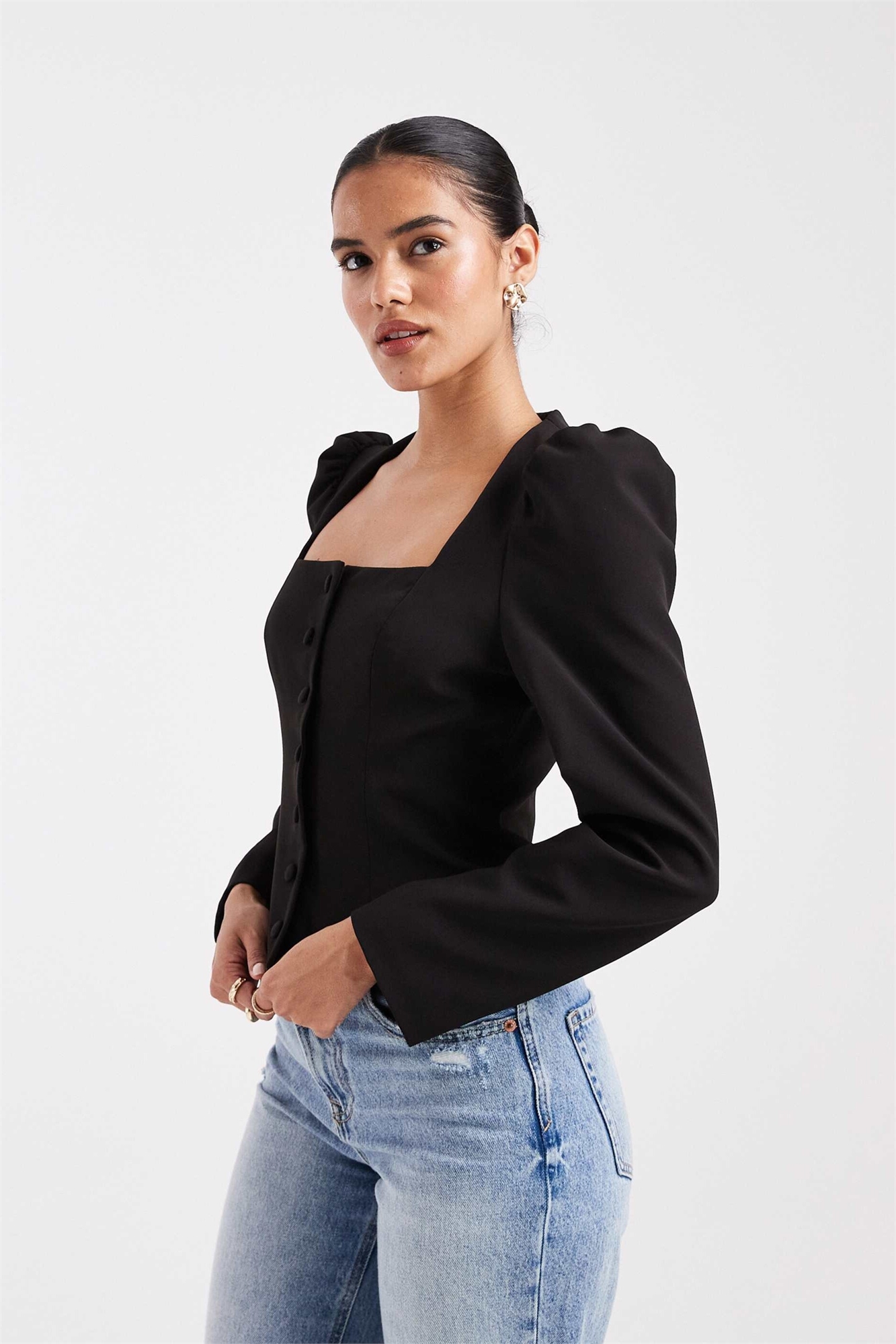 Топ с рукавами-буфетками и без воротника, скроенный по фигуре