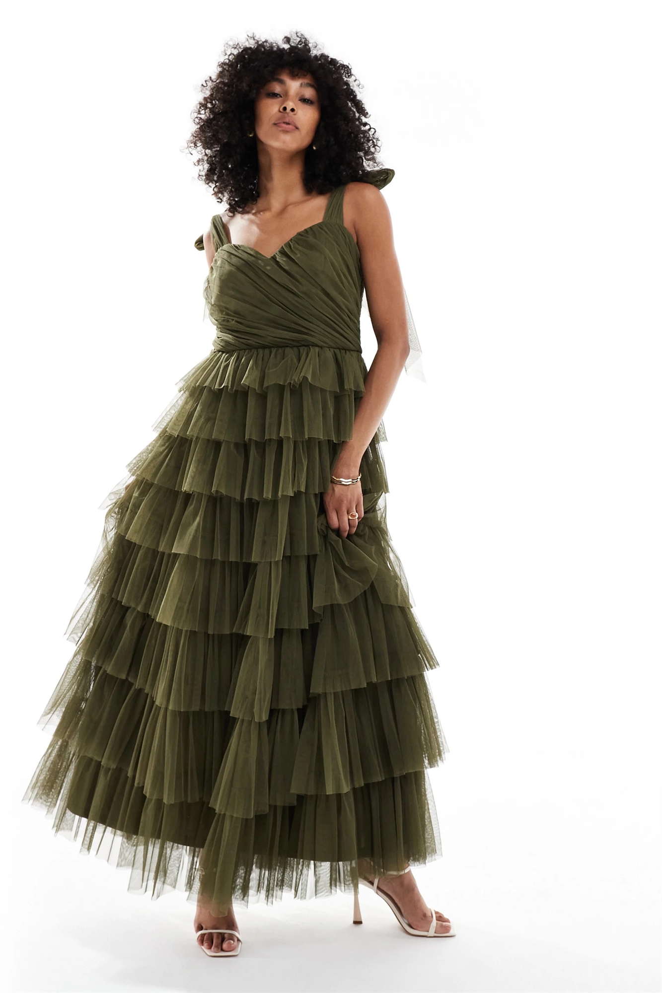 Макси-платье с завязками на плечах из тюля