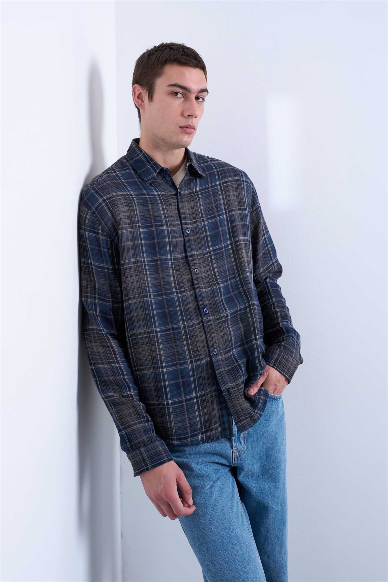 Рубашка в клетку с прозрачной тканью, классический крой