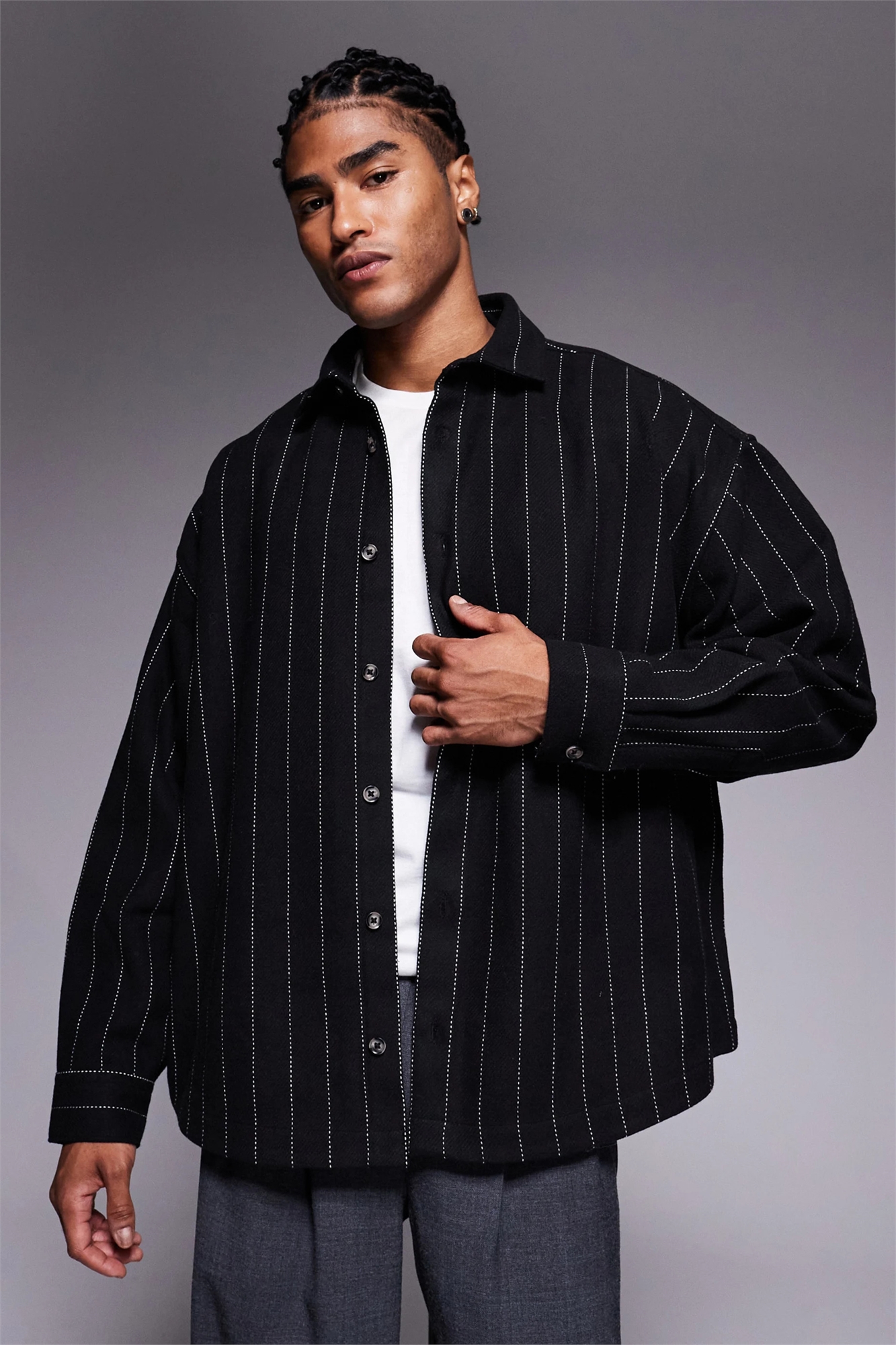 Рубашка свободного кроя с узором «под шерсть» в тонкую полоску