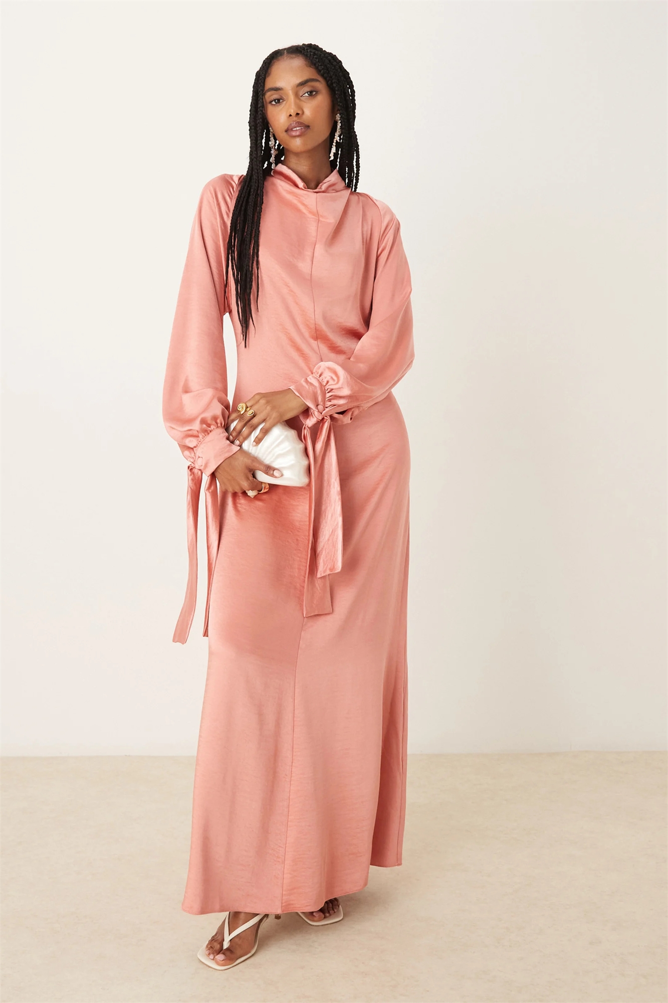 Макси-платье-блузон с высоким воротником