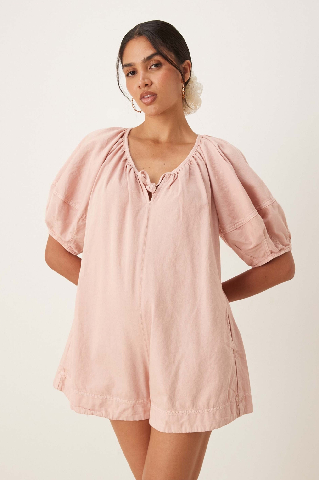 Комбинезон из мягкого денима с рукавами-балонами