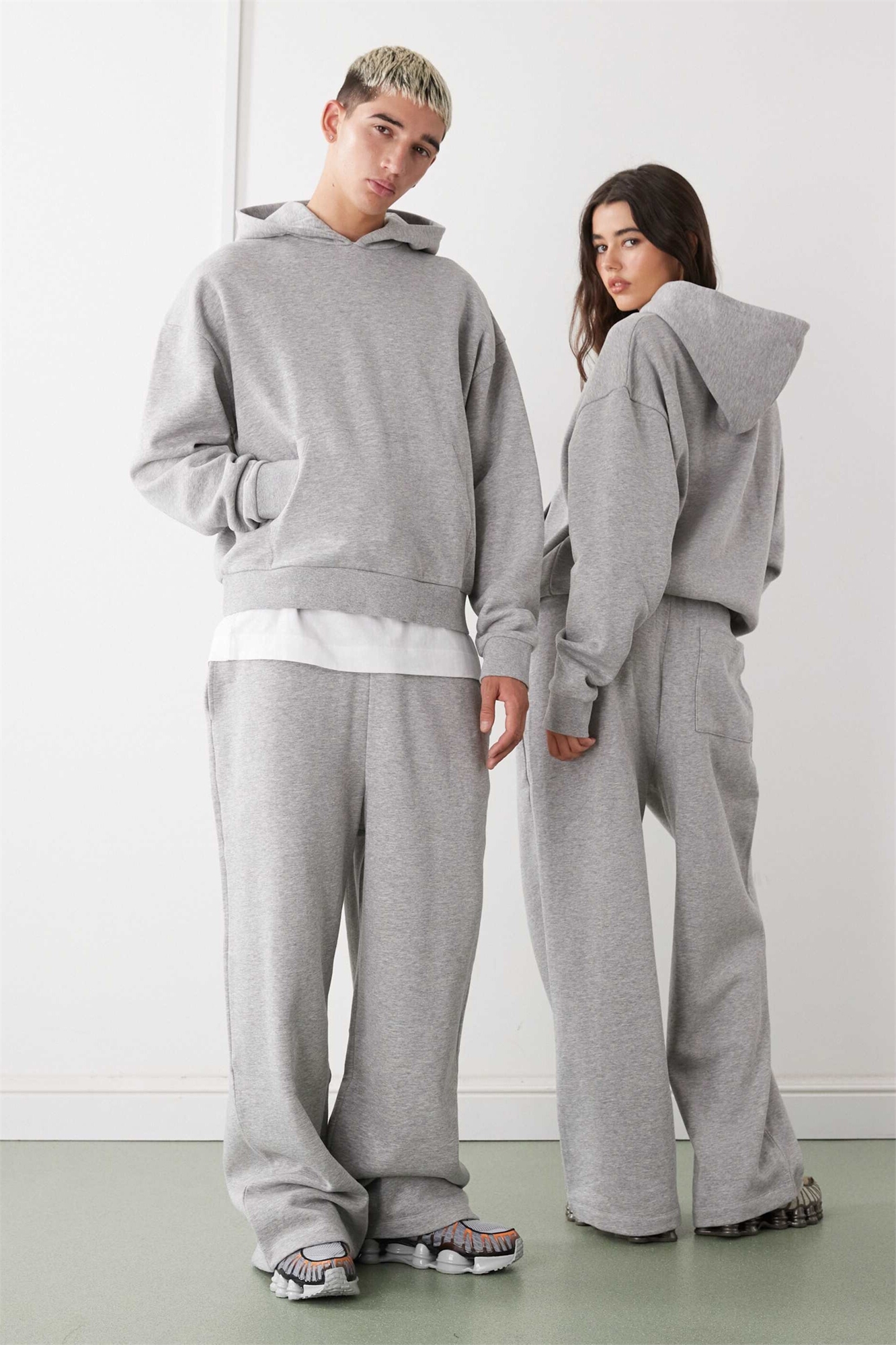 На первой модели одежда размера S. Рост модели: 177 см. На второй модели одежда размера M. Рост модели: 185,5 см.