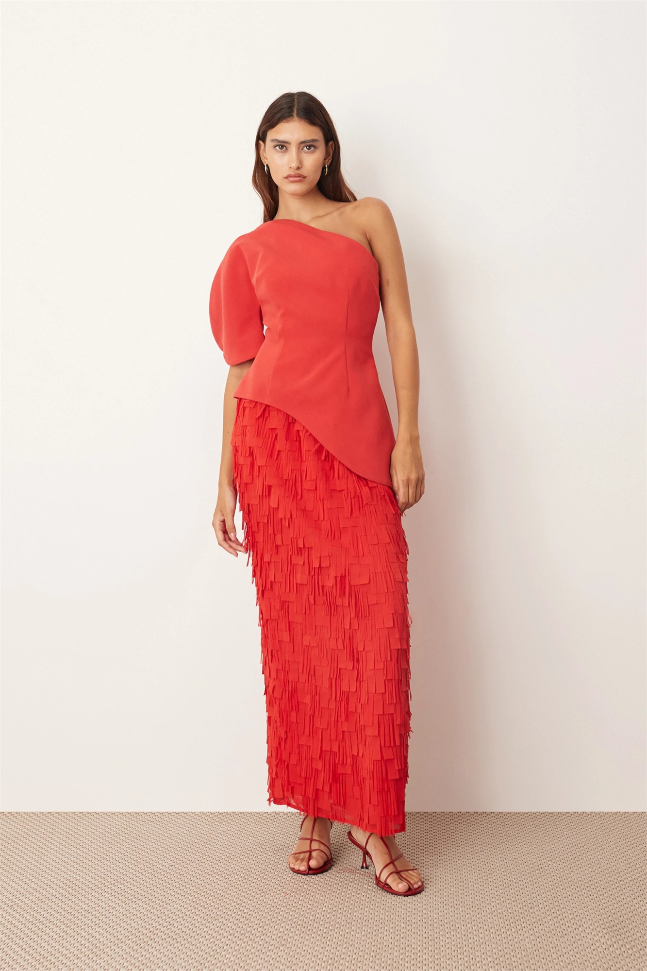 Скульптурное макси-платье с одним плечом и комбинированной фактурой