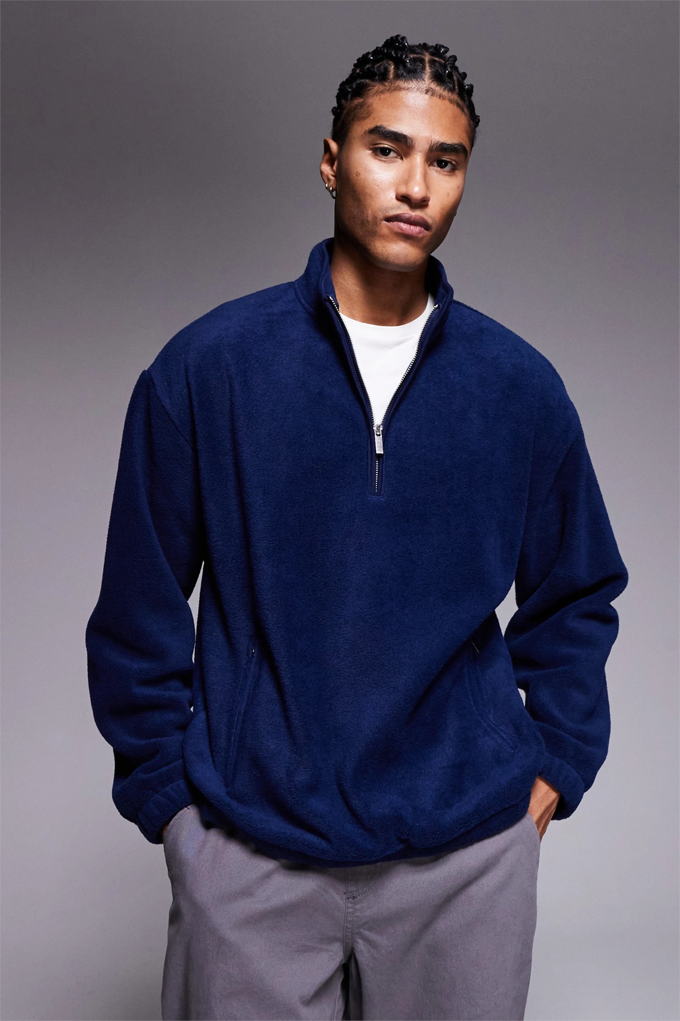 Свободная флисовая кофта с четвертью молнии и прямого кроя