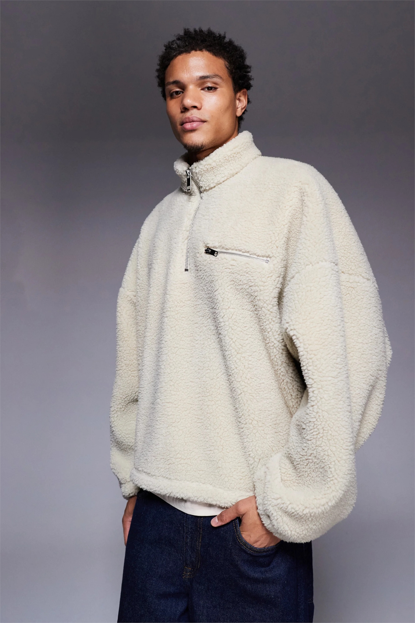 Флисовая толстовка свободного кроя с воротником-воронкой и четвертью молнии