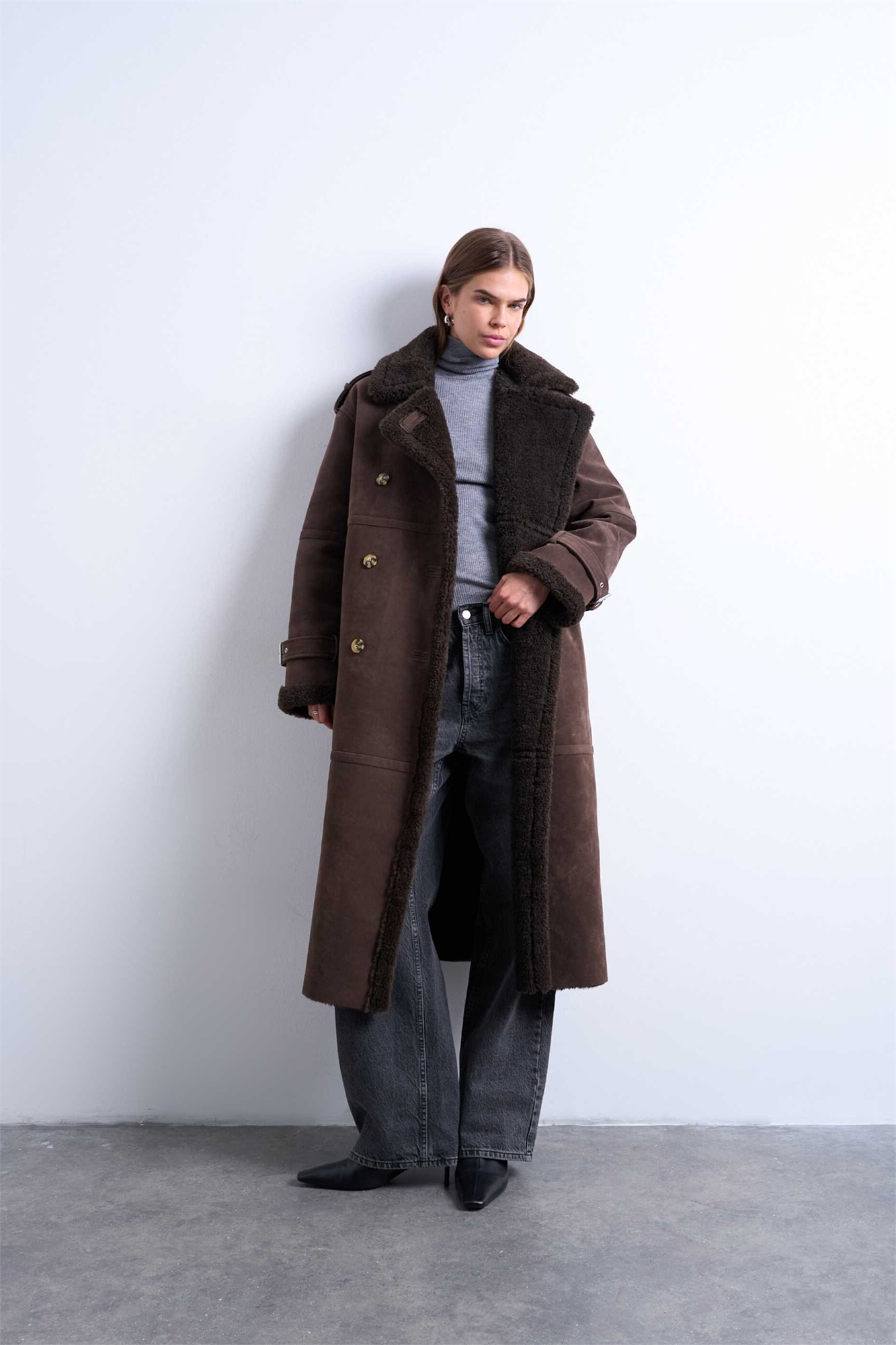 Авиаторская куртка из овчины с длинным воротником-воронкой