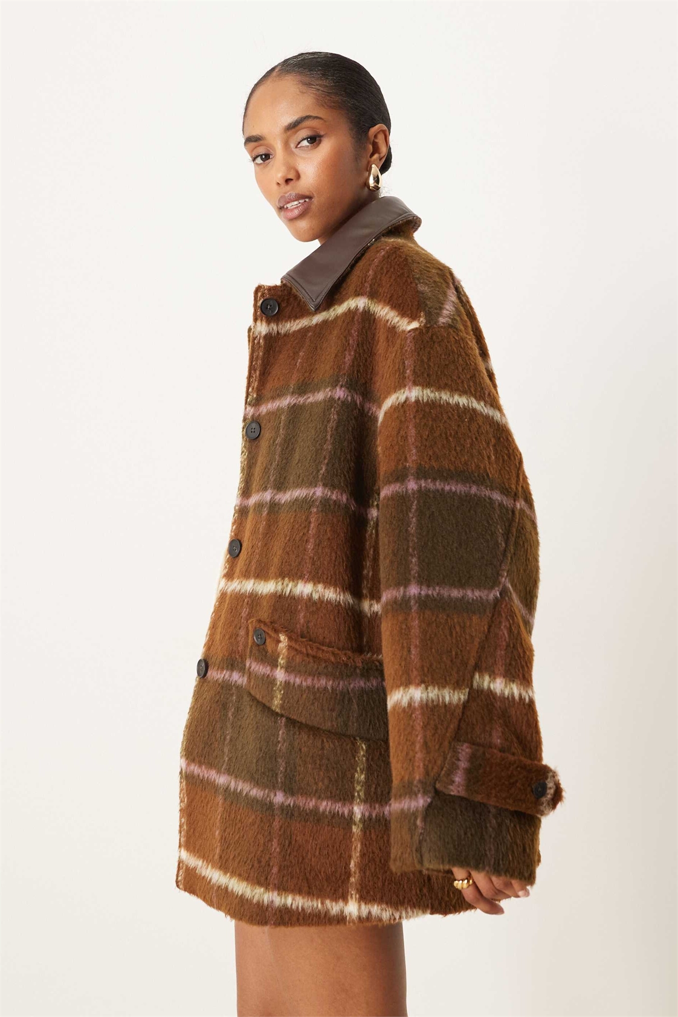 Куртка с объемным воротником под кожу