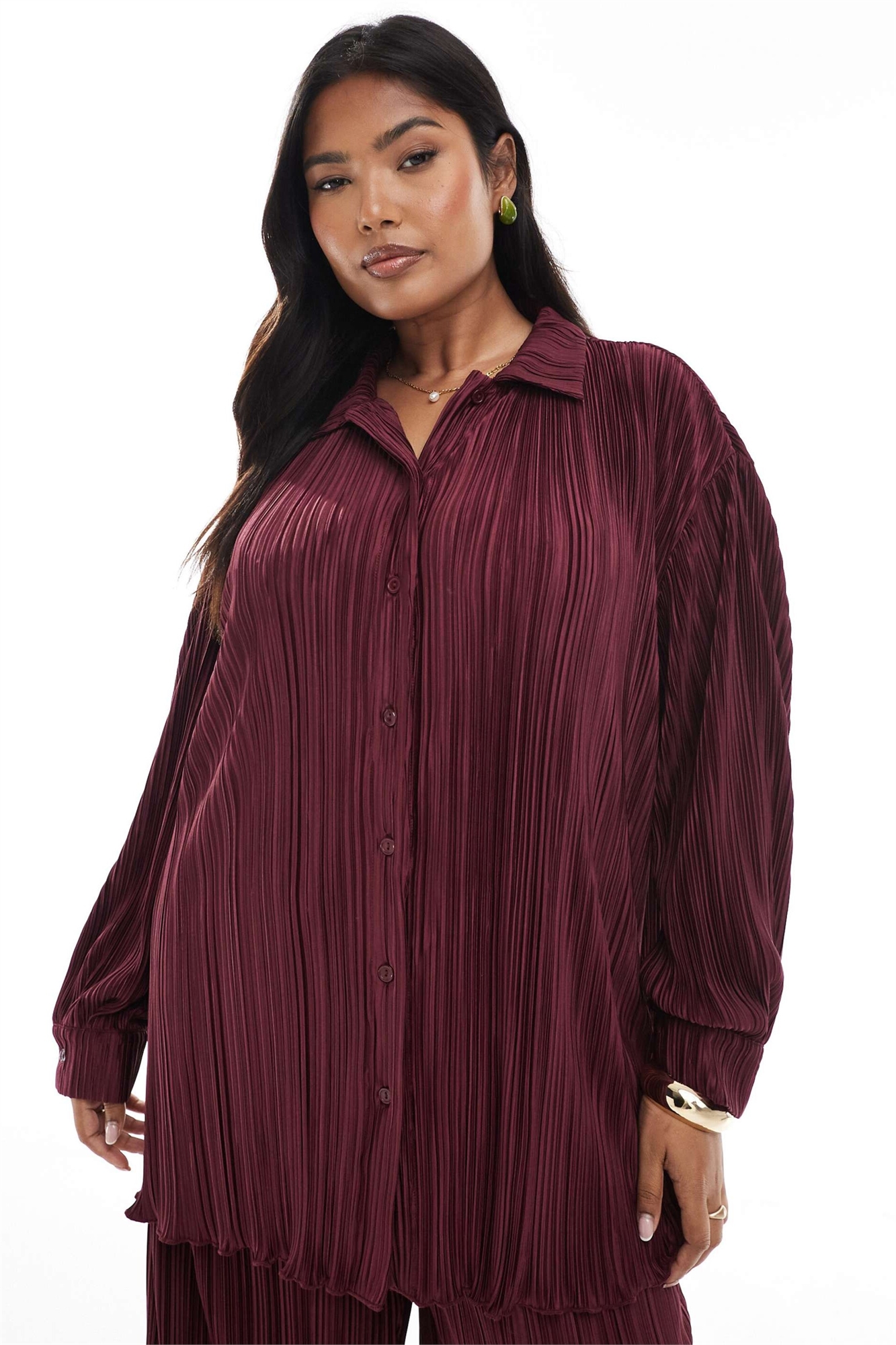Рубашка с воротником-плиссе и застежкой на пуговицах спереди co-ord
