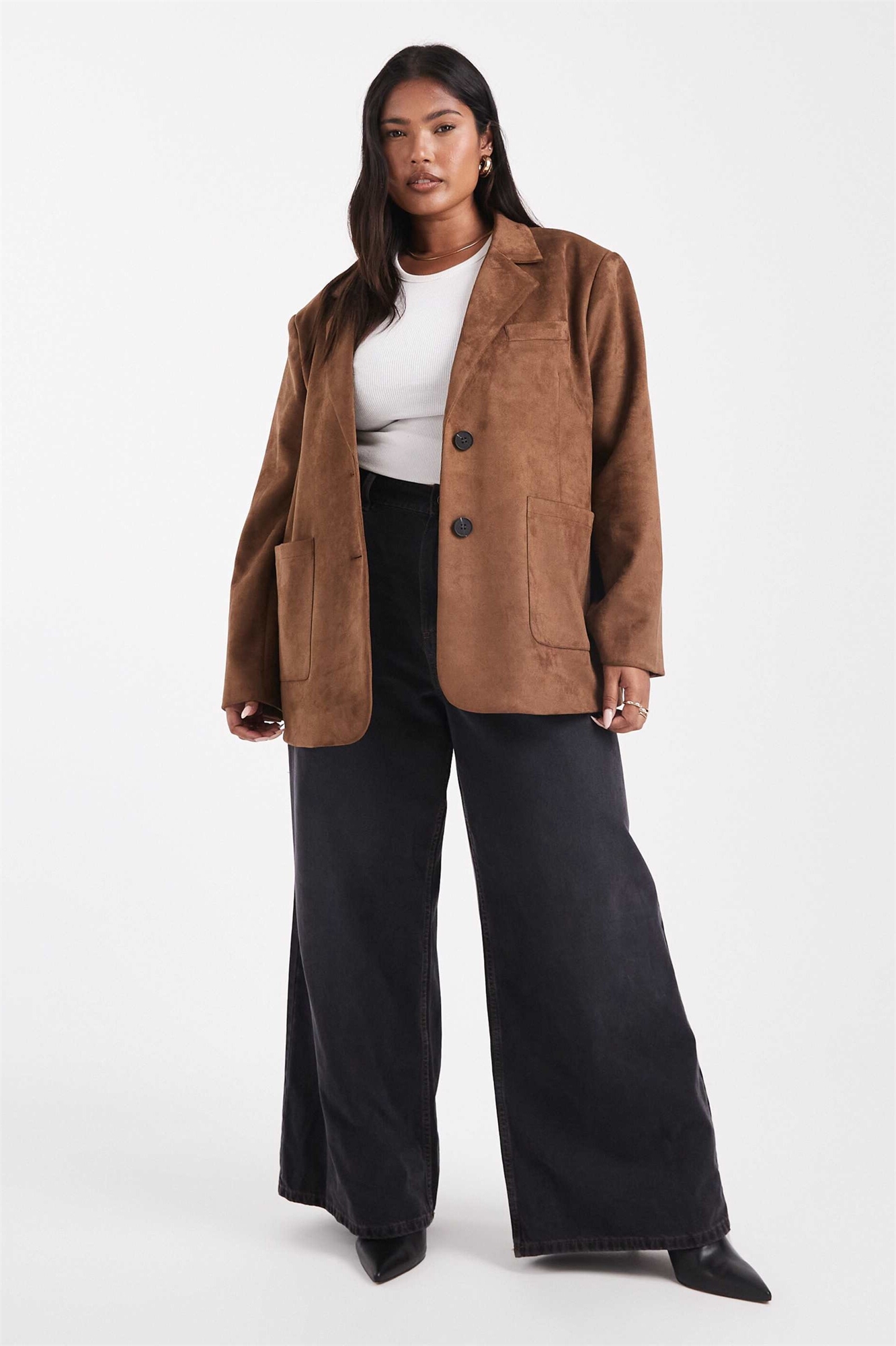 Блейзер классического кроя с карманами на передней части из искусственной замши