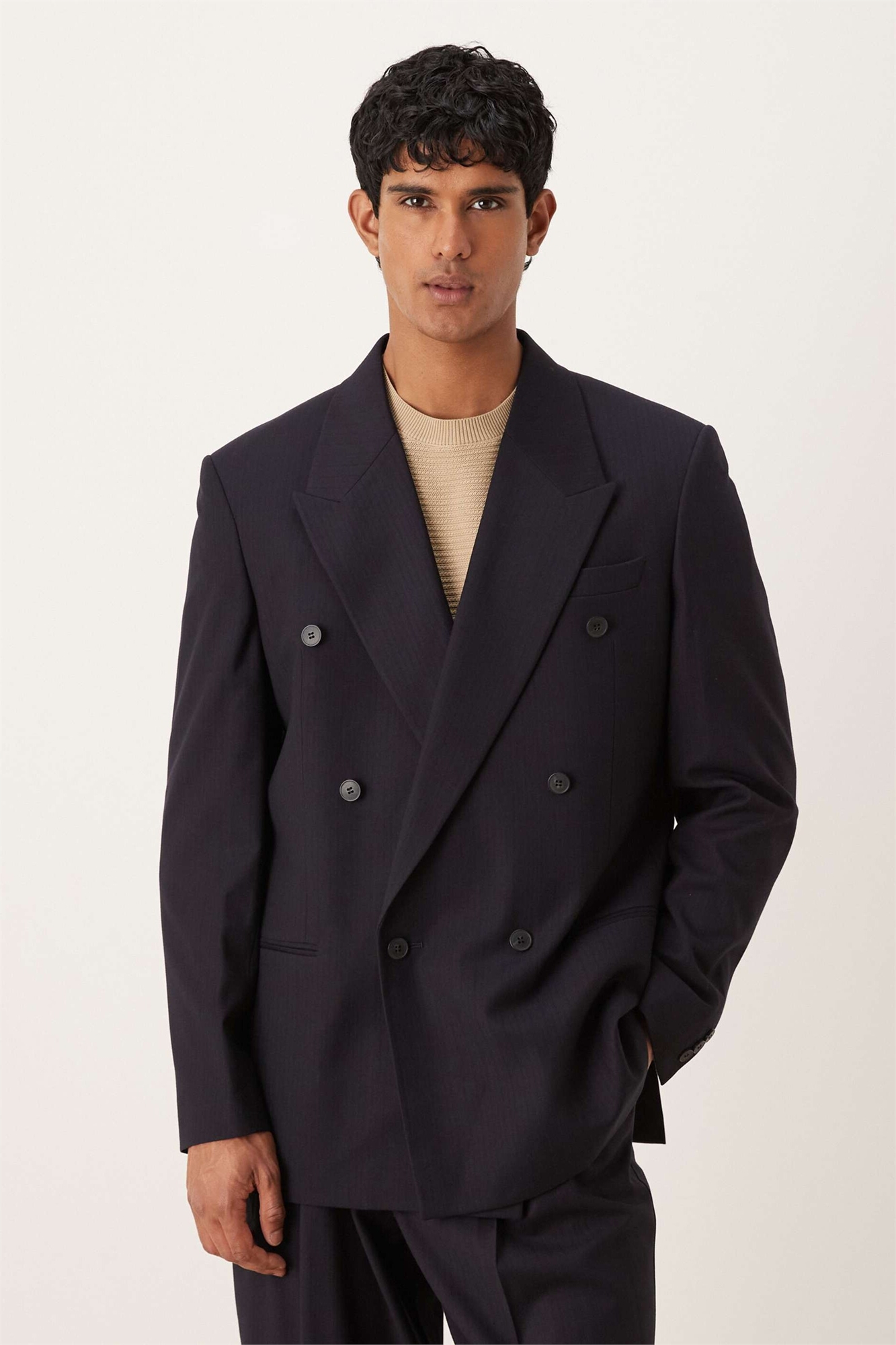 Свободный пиджак с двойной застежкой и тонкой тканой полоской