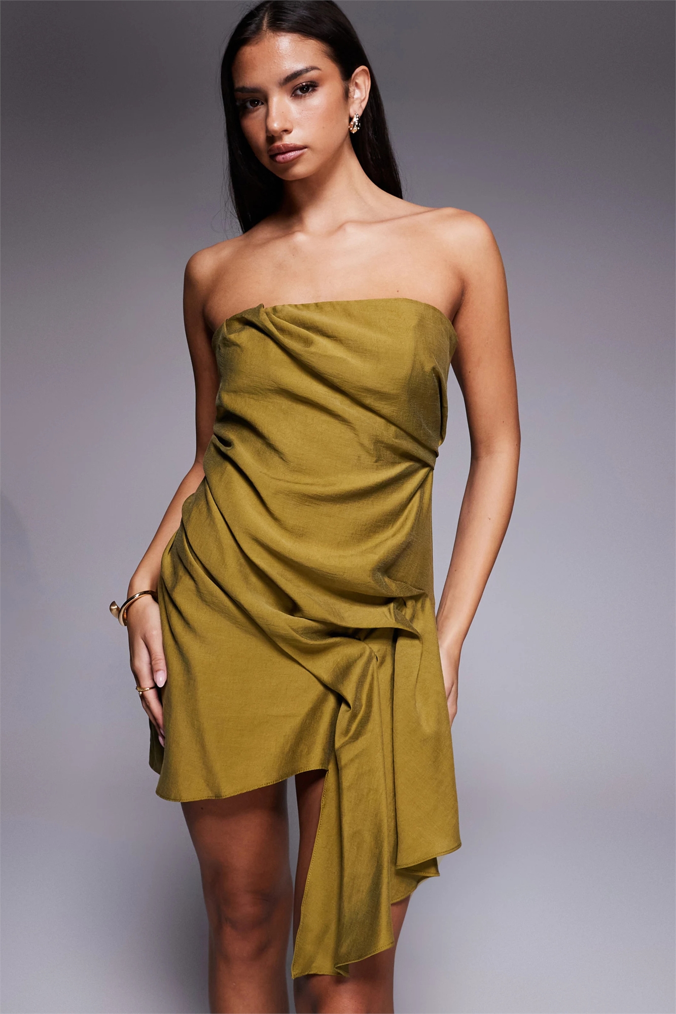 Мини-платье-бандо с боковыми складками