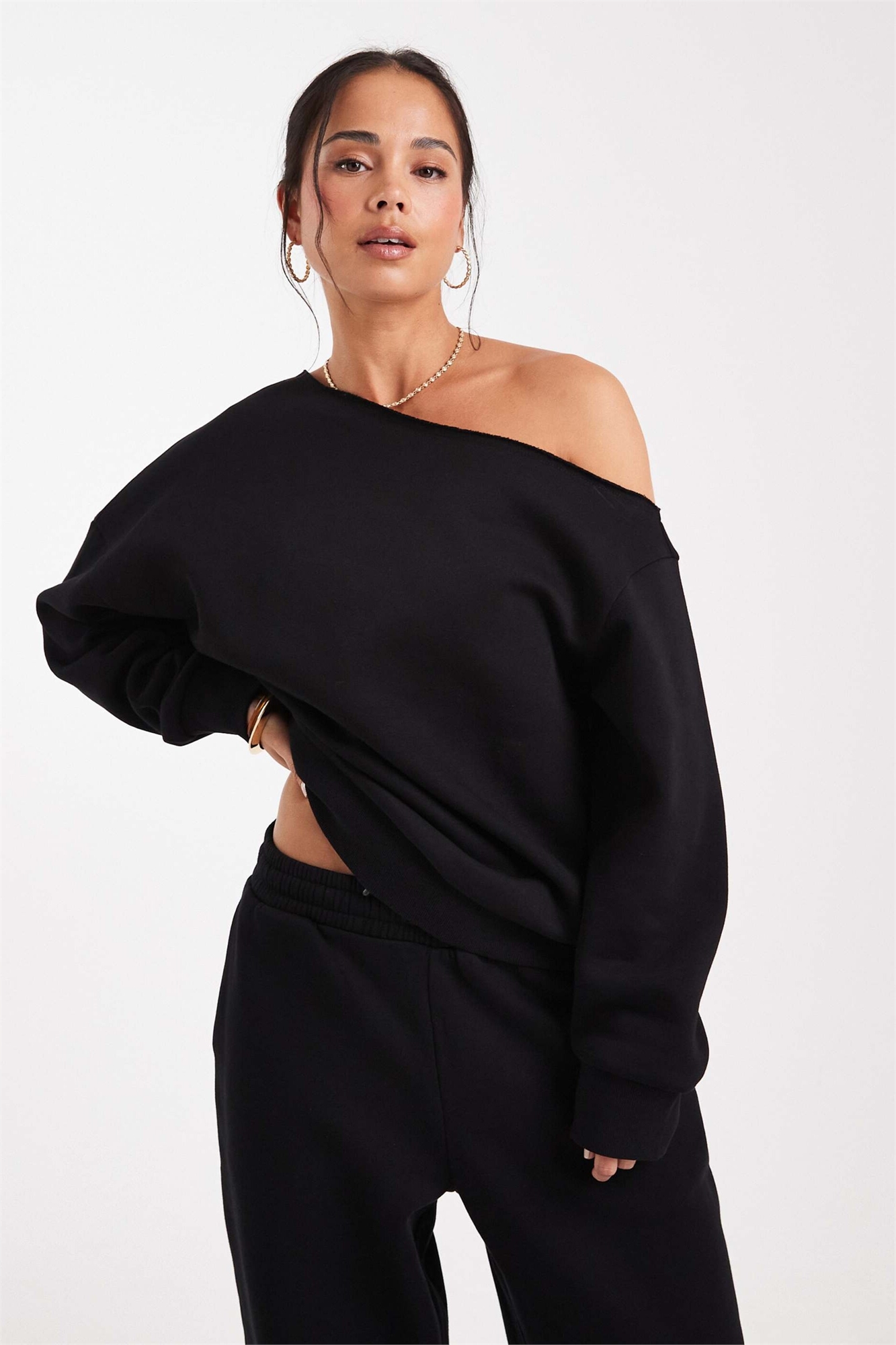 Толстовка с открытыми плечами и воротником-стойкой