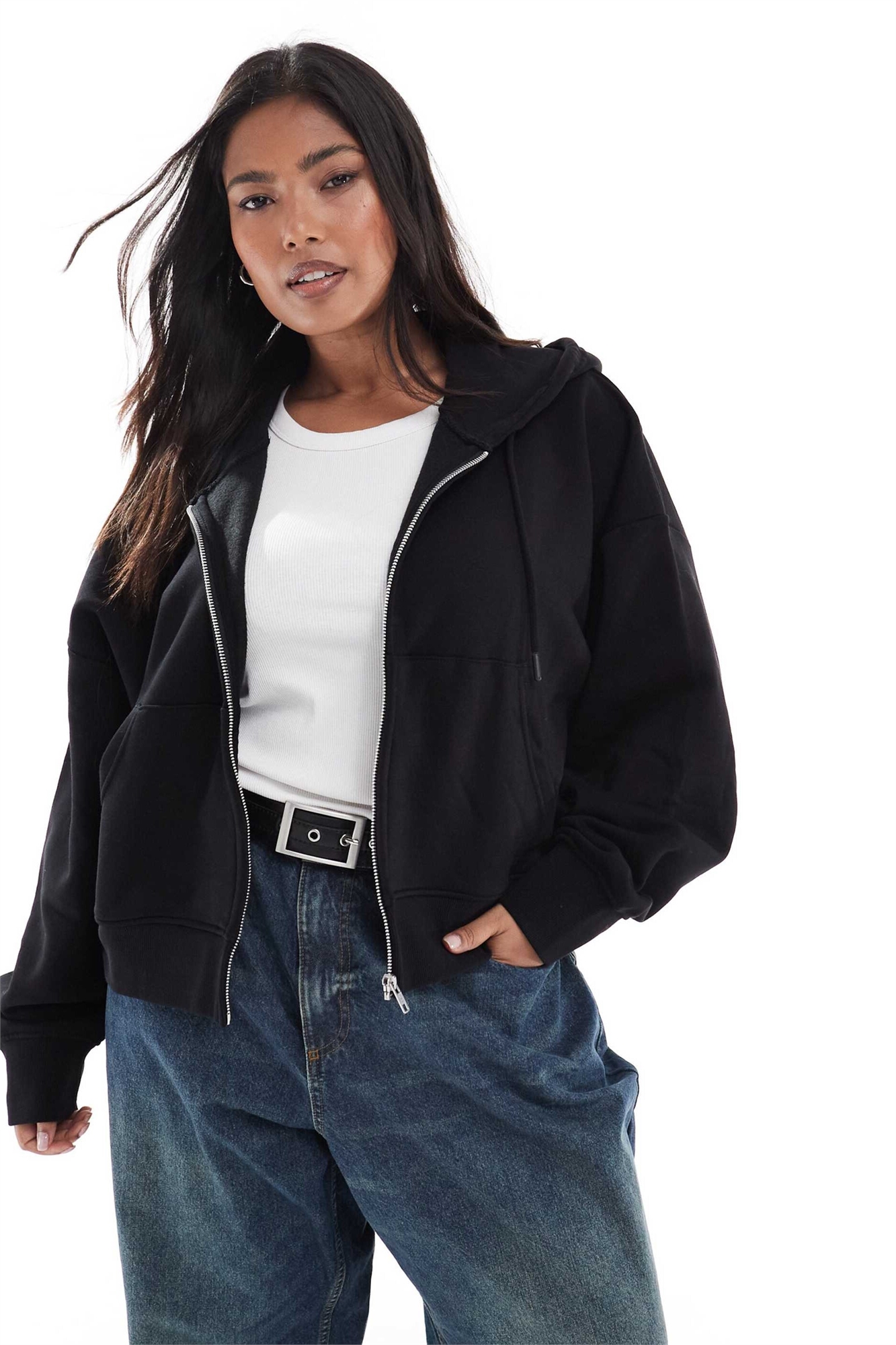 ASOS DESIGN: укороченная толстовка с капюшоном и застежкой-молнией из ворсистой ткани для полных