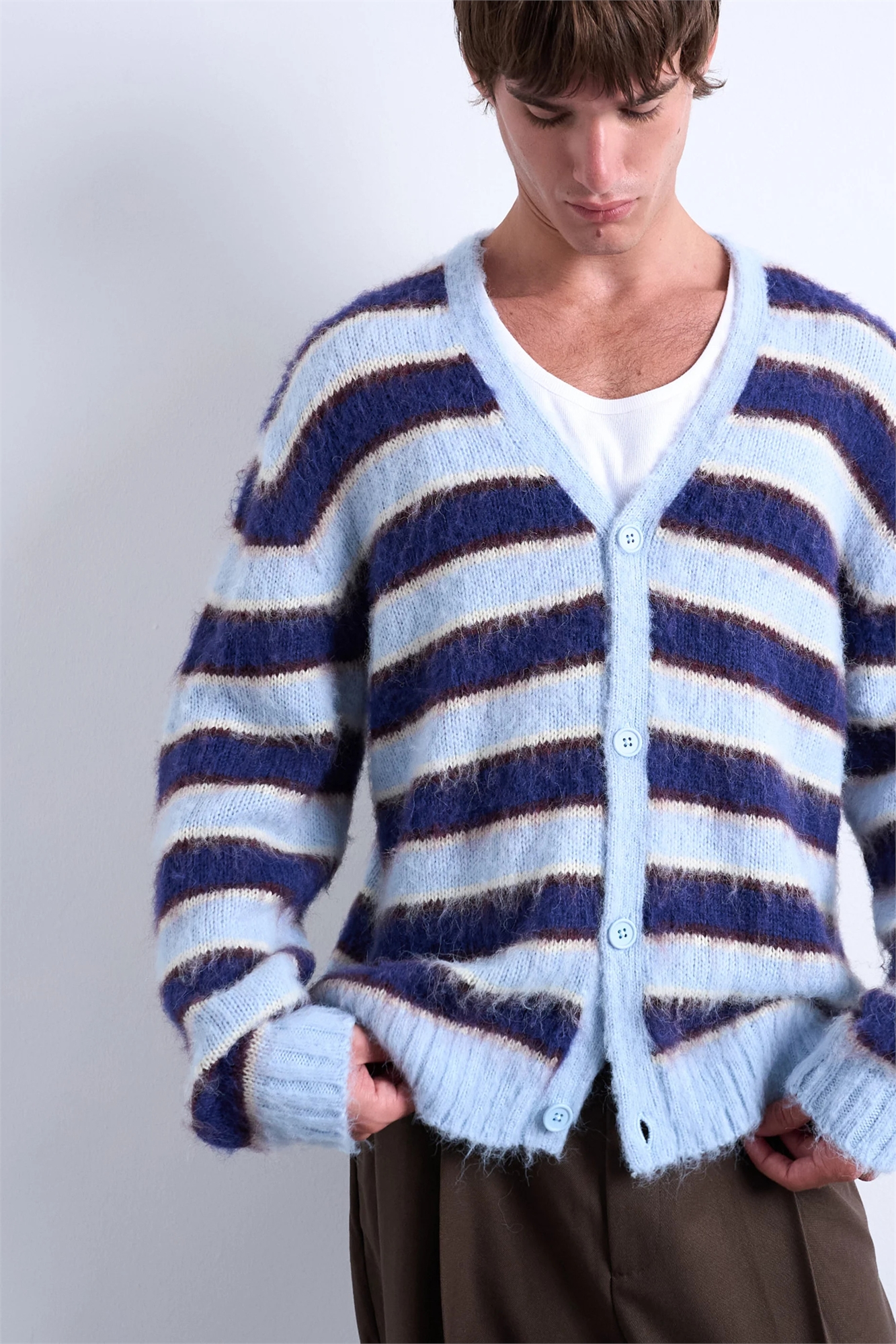 Кардиган свободного кроя из мягкого трикотажа в полоску