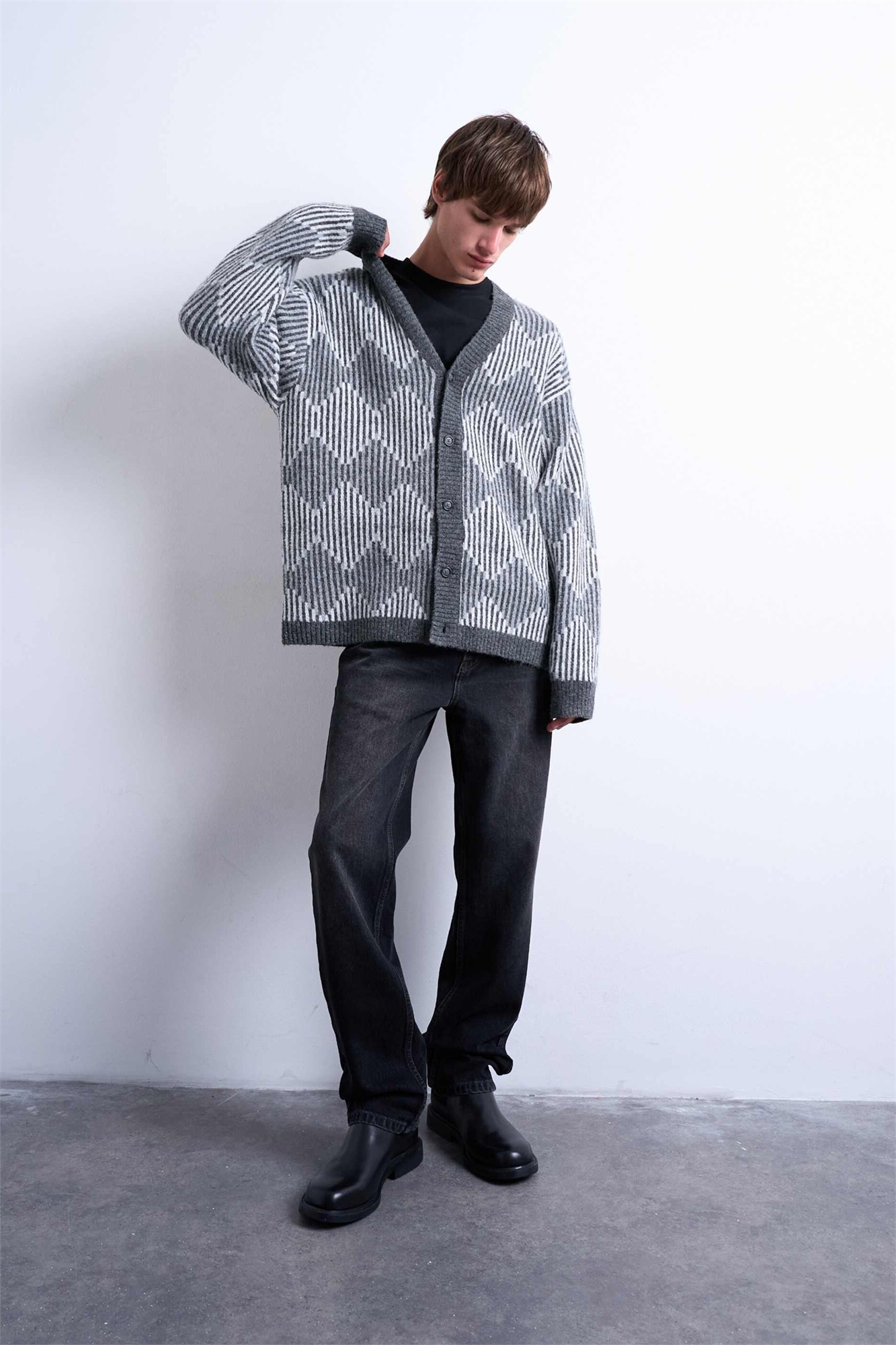 Кардиган с ромбовидным узором из трикотажа
