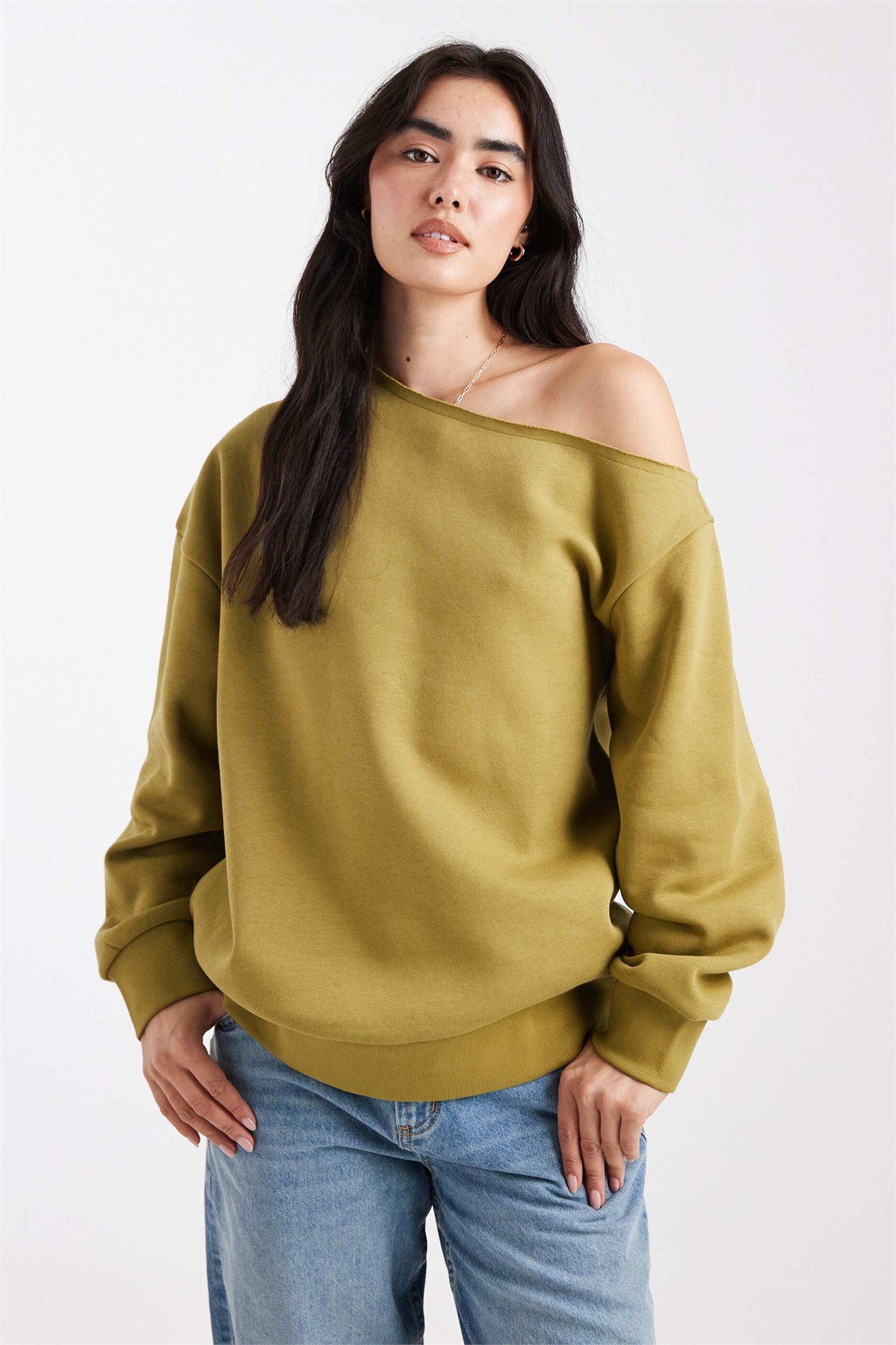 Свитшот с открытыми плечами и воротником-стойкой