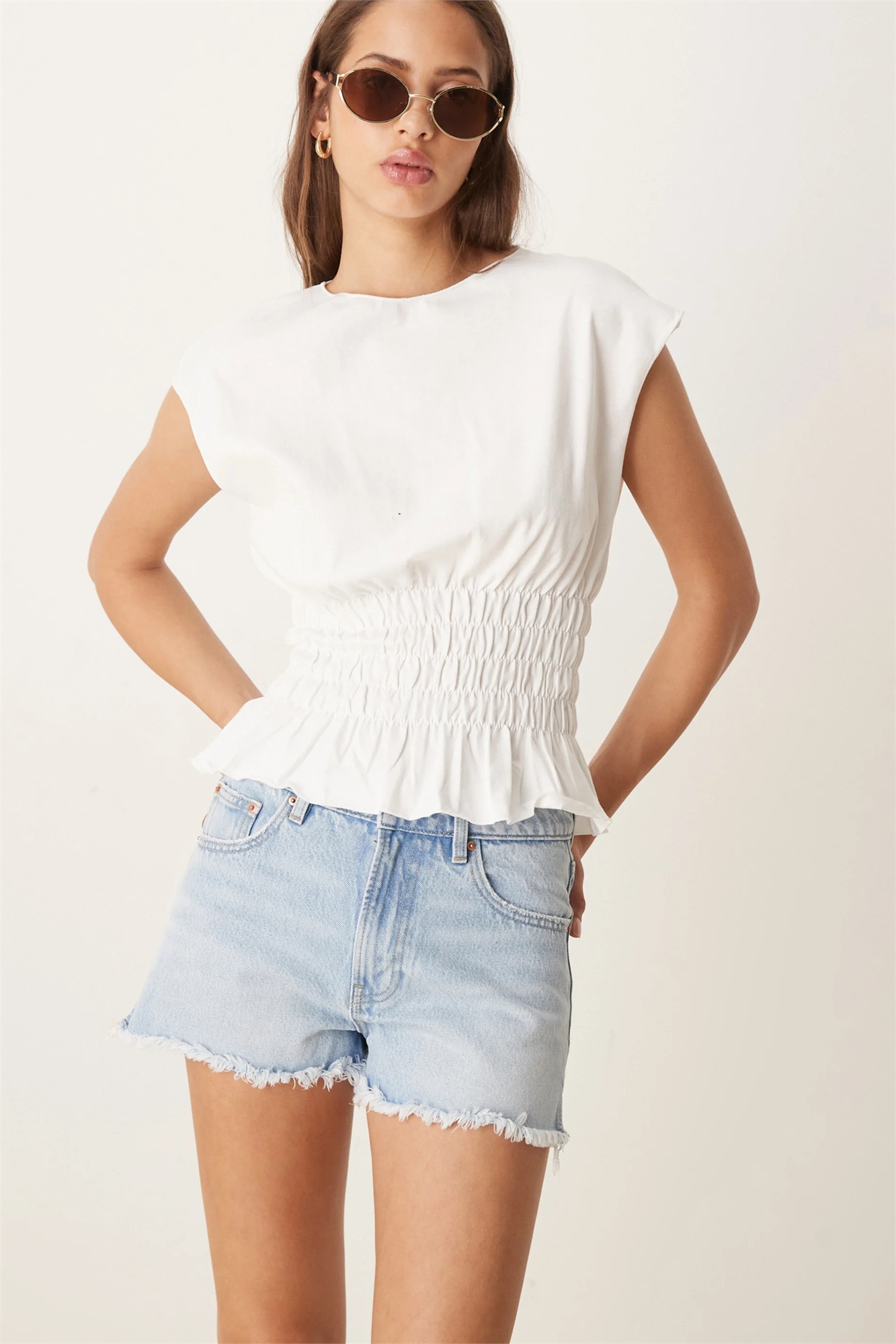 Джинсовые шорты с разрезами по низу
