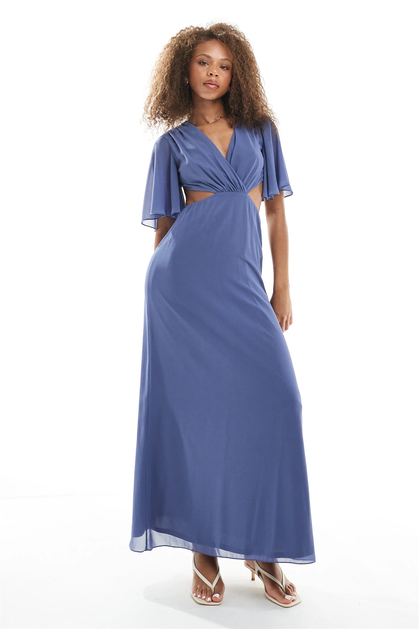 Макси-платье для подружки невесты с расклешенными рукавами, вырезами и бантом на спине