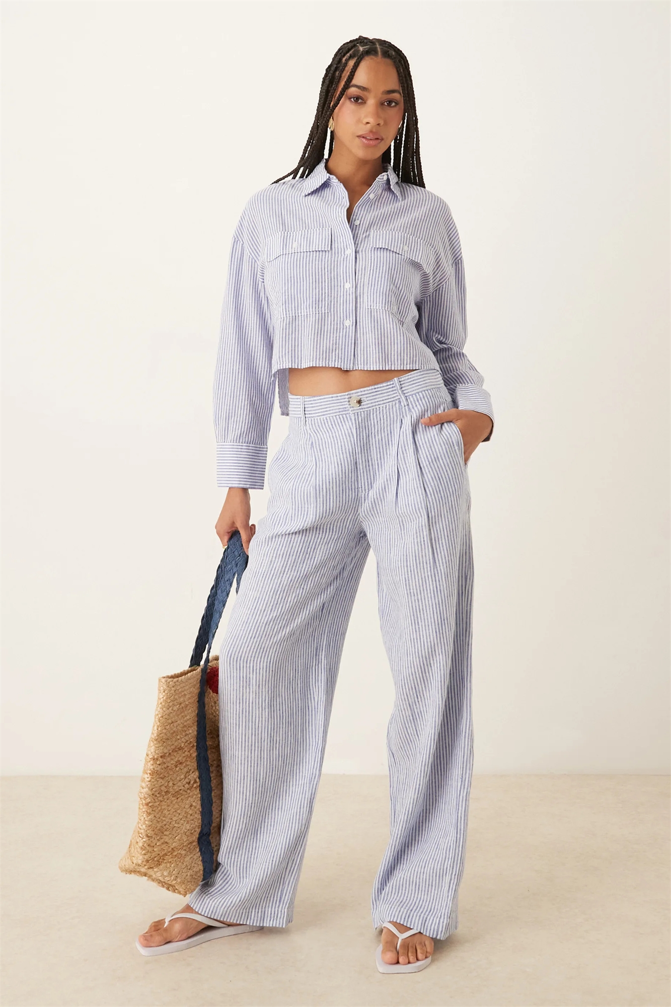Брюки из смешанного льна в полоску с эластичным поясом co-ord