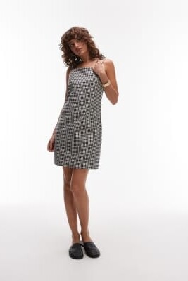 Мини-платье с квадратным вырезом из ткани с высоким содержанием хлопка