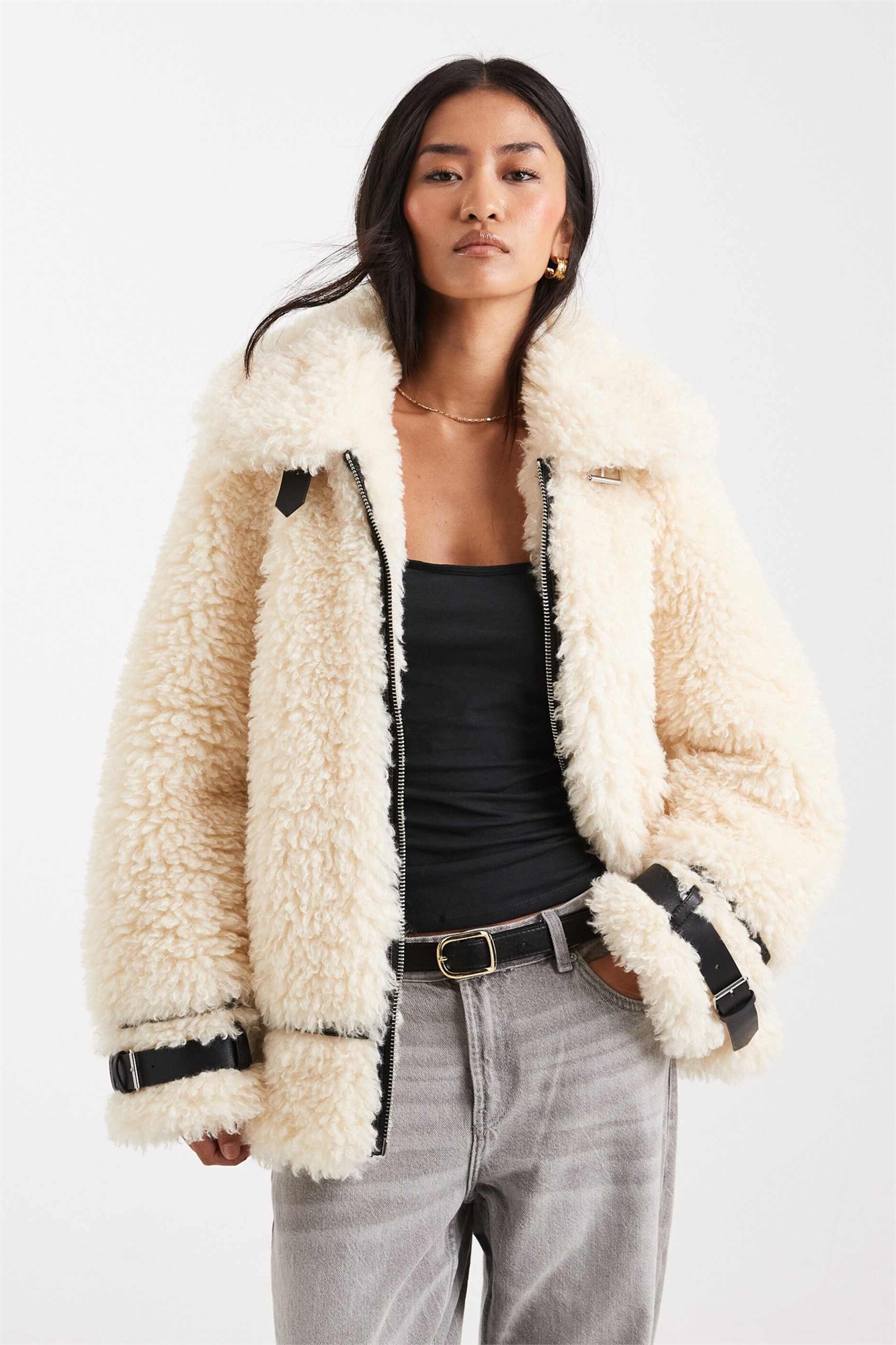 Борг: ткань типа плюшевого мишки с мягкой, неровной текстурой Основной материал: 100% полиэстер, подкладка: 100% полиэстер.