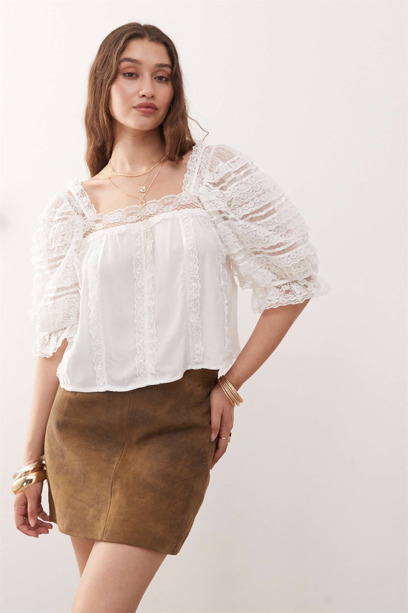 Блузка из смешанной ткани с кружевом